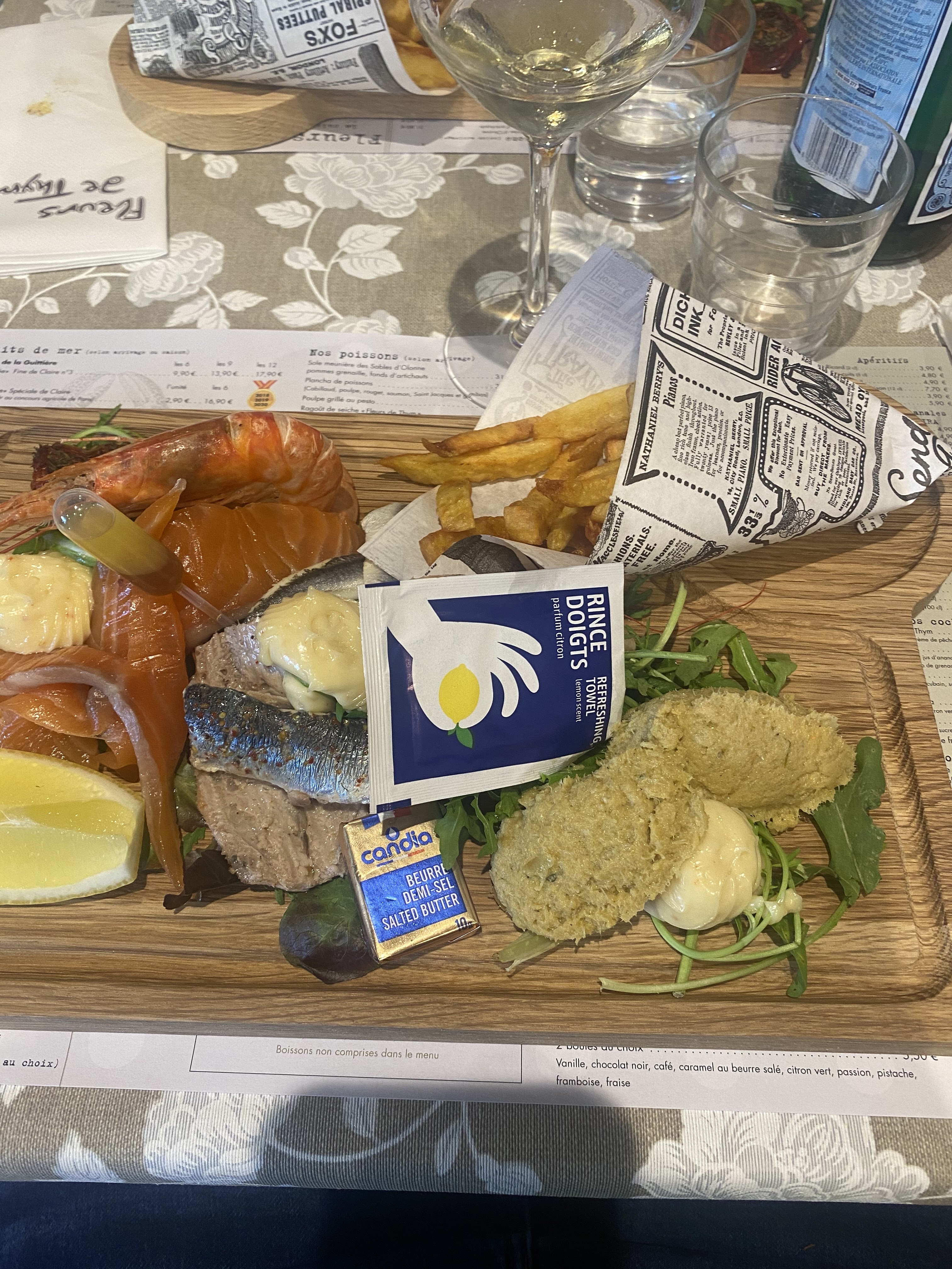 Une très belle surprise. Diner sur une table en terrasse au calme brassee par le vent, personnel très sympathique et à l'écoute. Plateau de fruits de mer extra ! Cuisson parfaite. Ça vaut clairement le prix pour avoir mangé dans d'autres établissements de la ville. En photos ci jointes : plateau 1 personne très copieux. Obligatoire : pensez à réserver pour avoir une table et venir en début de service pour éviter le coup de feu en cuisine. Restaurant très demandé donc risque d'attente, normal quand on a du succès.