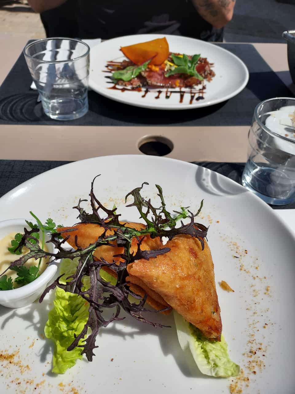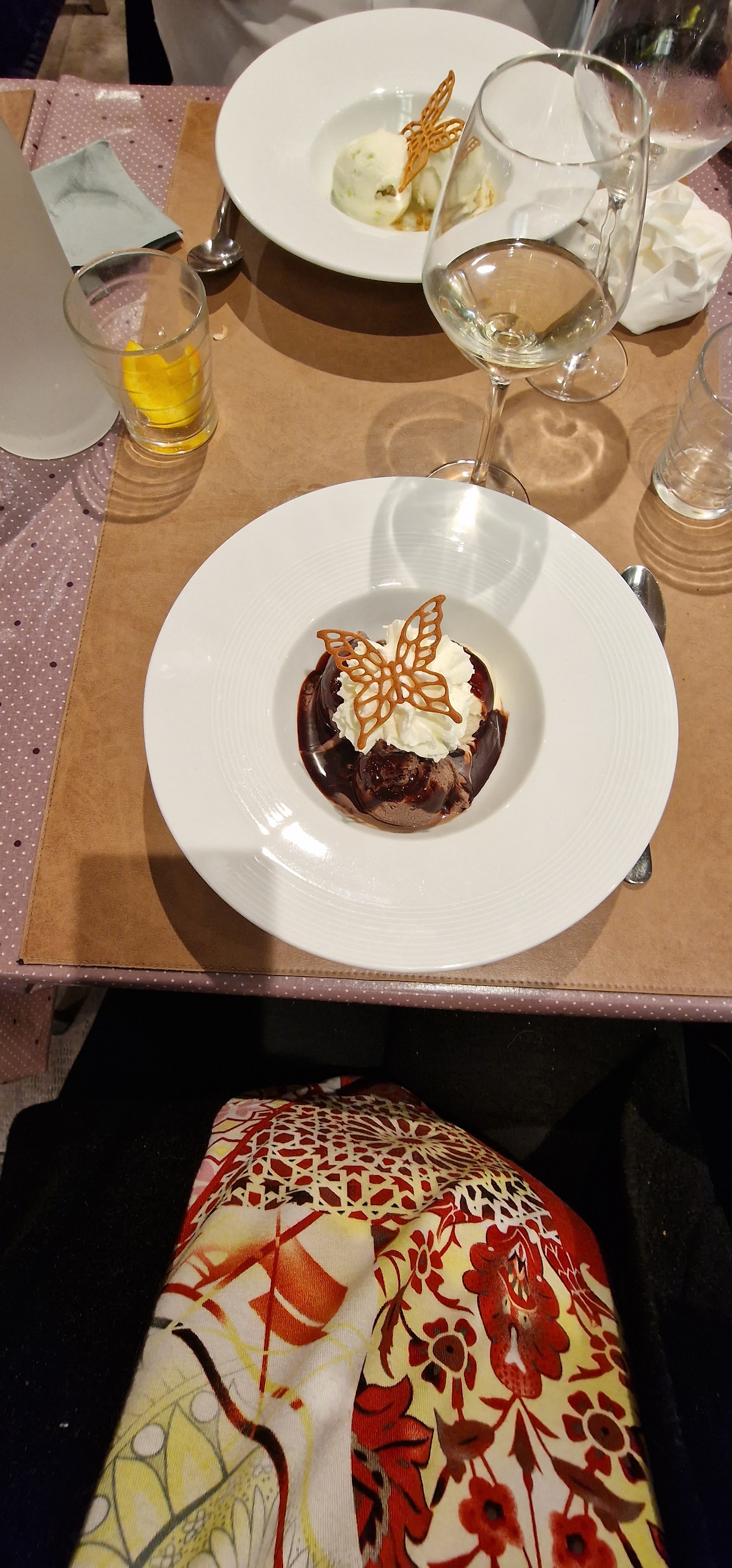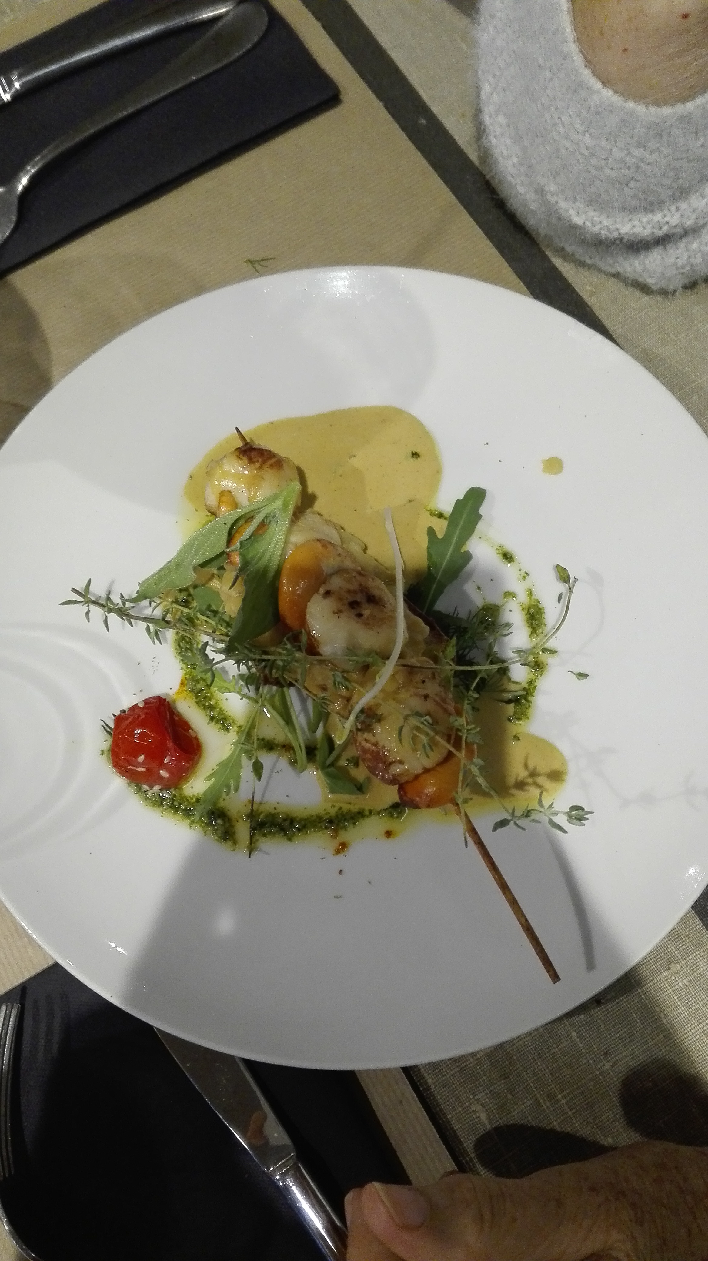 Dîner pour 2, entrée parfaite une assiette de fruits de mer très frais 😊le plat de seiches au chorizo beaucoup trop cuit, aucune texture ni de goût, desserts bons mais pas mémorables