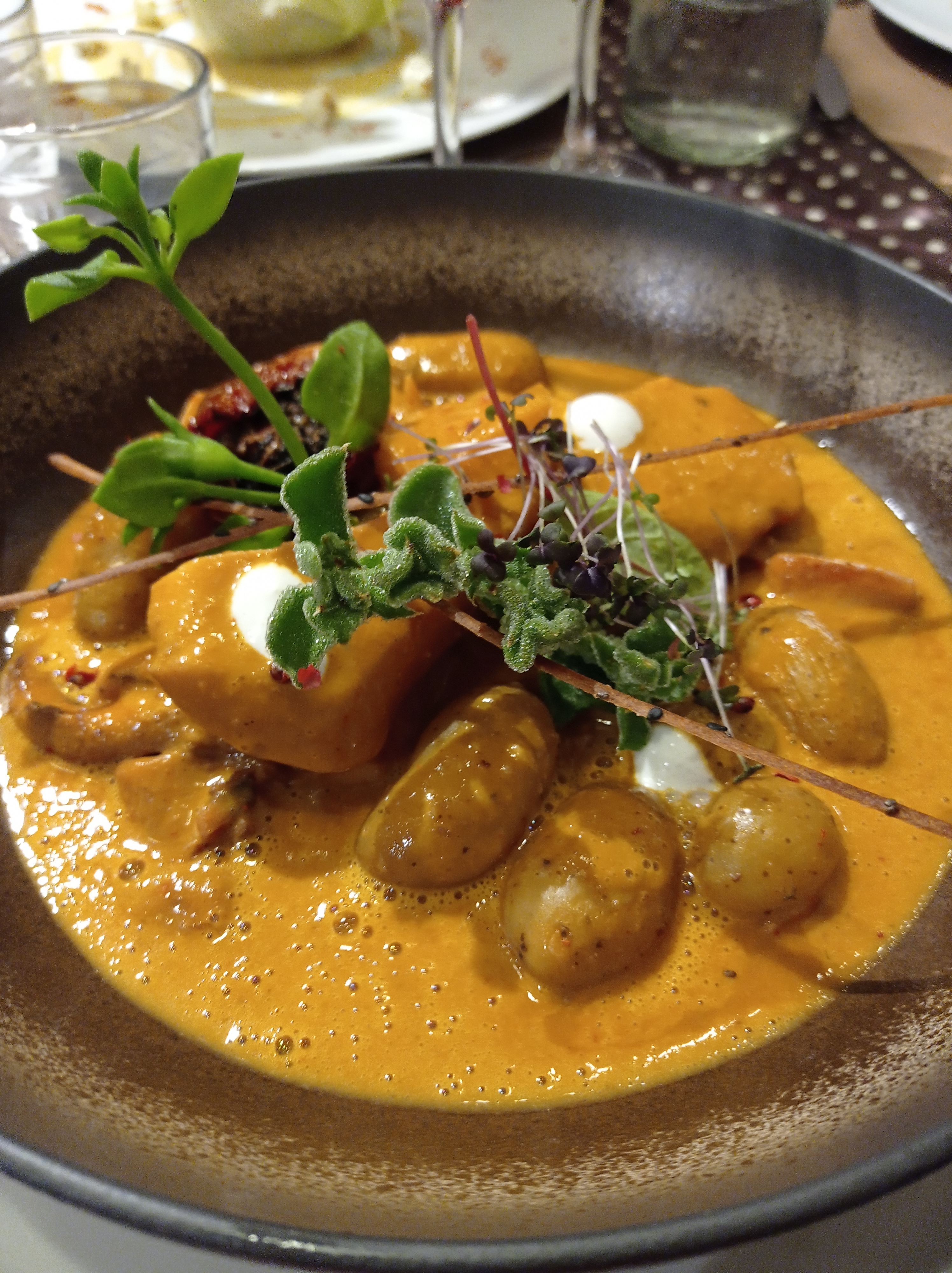 Très bon restau qui nous avait déjà séduit rien que par le nom. Cuisine raffinée et aux épices bien proportionnée je vous recommande cet endroit. Idéal pour un dîner en amoureux ♥️