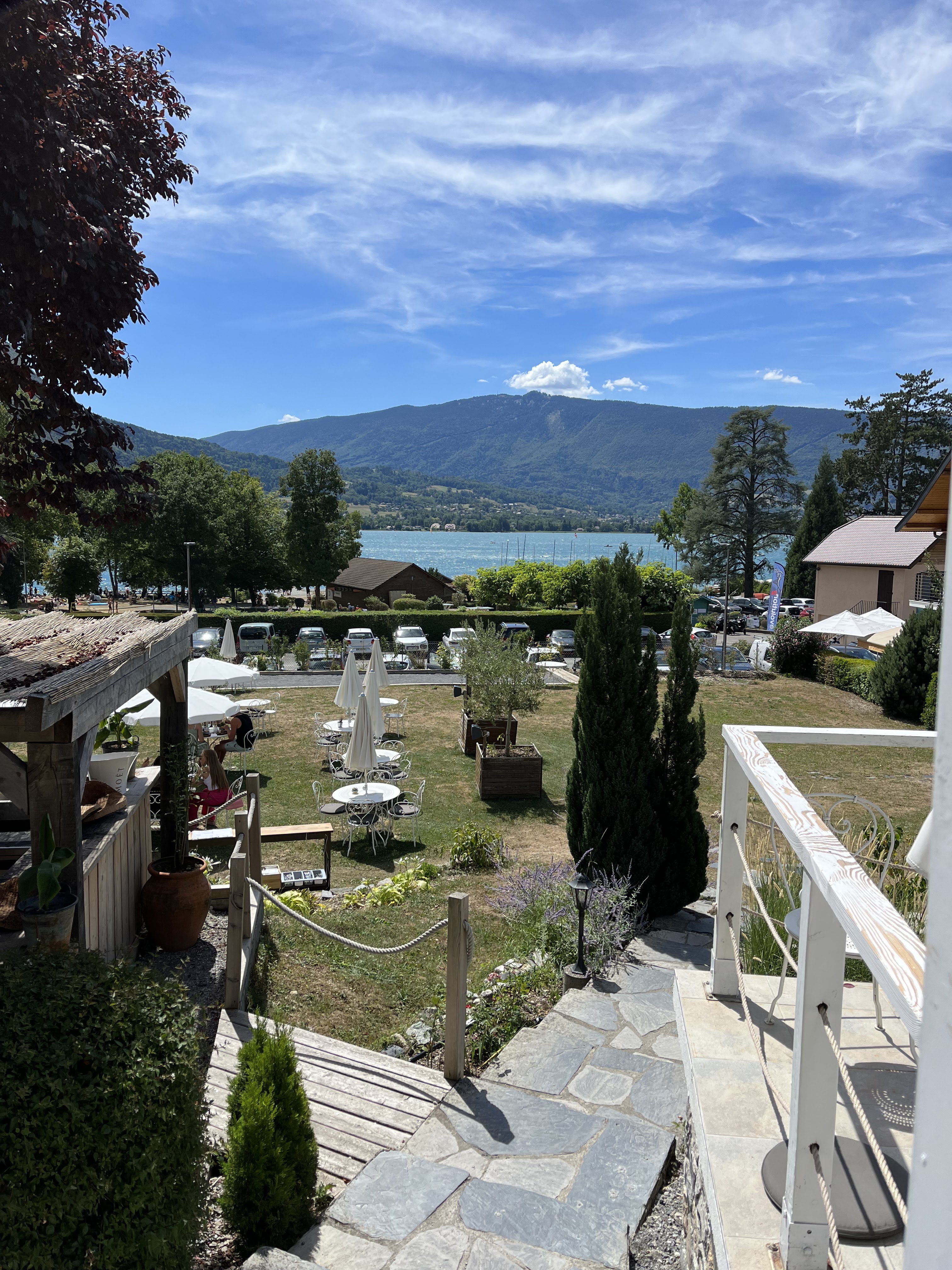 Magnifique terrasse avec vue sur le lac d’Annecy, entre la gentillesse, l’attention des serveurs et la qualité de la nourriture, vous êtes sur de passer un moment très agréable. De plus, il y en a pour tous les goûts grâce aux différents espaces : restaurant, terrasse, jardin, piscine.