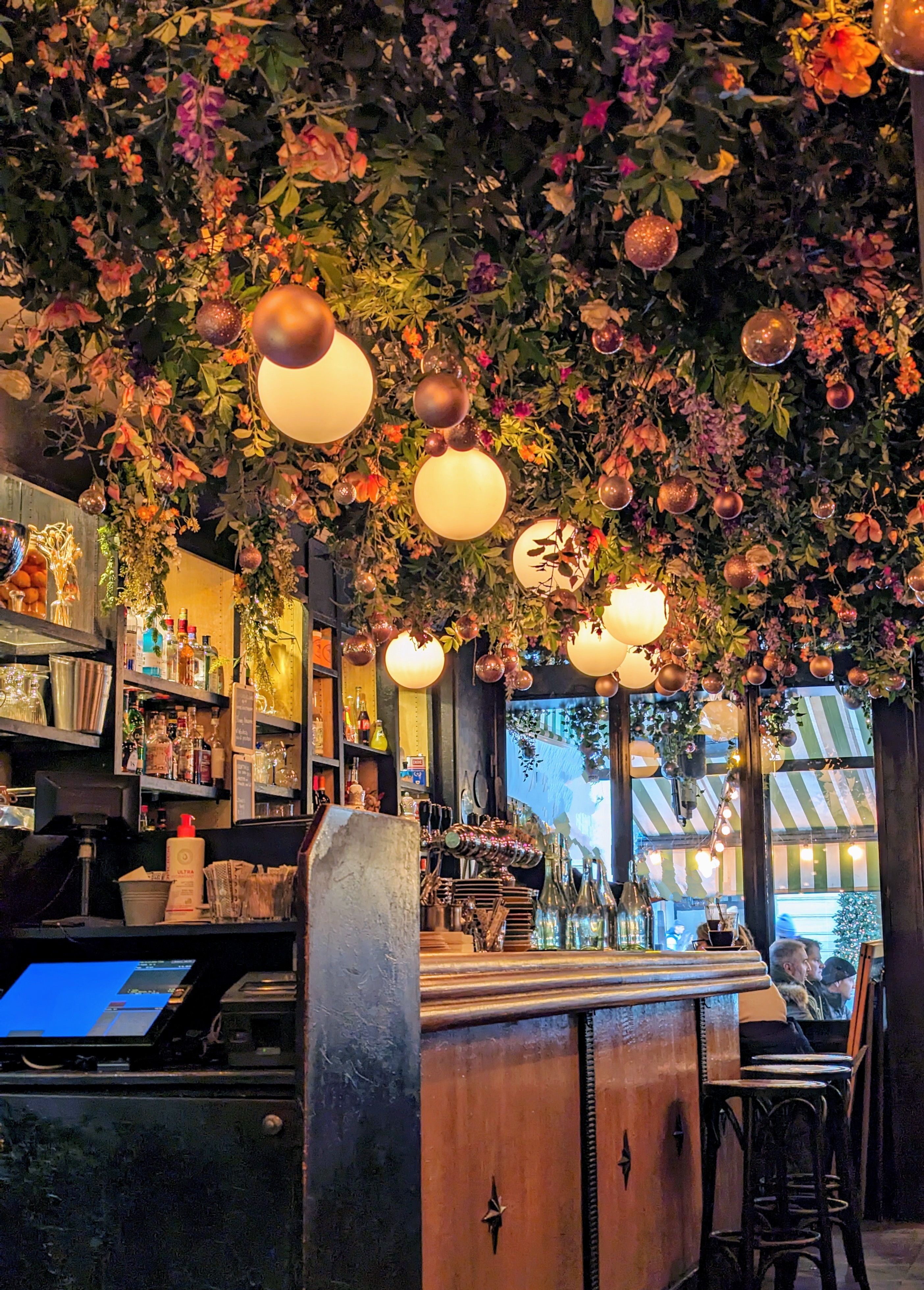 La décoration d’intérieure est propre et soignée, un plafond de plante et de fleurs juste sublime, idéal pour les amateurs de photos « Instagramable » Les vins et cocktails ne sont pas chères en happy hour, ce pendant la quantité du cocktail laisse à désirer.
