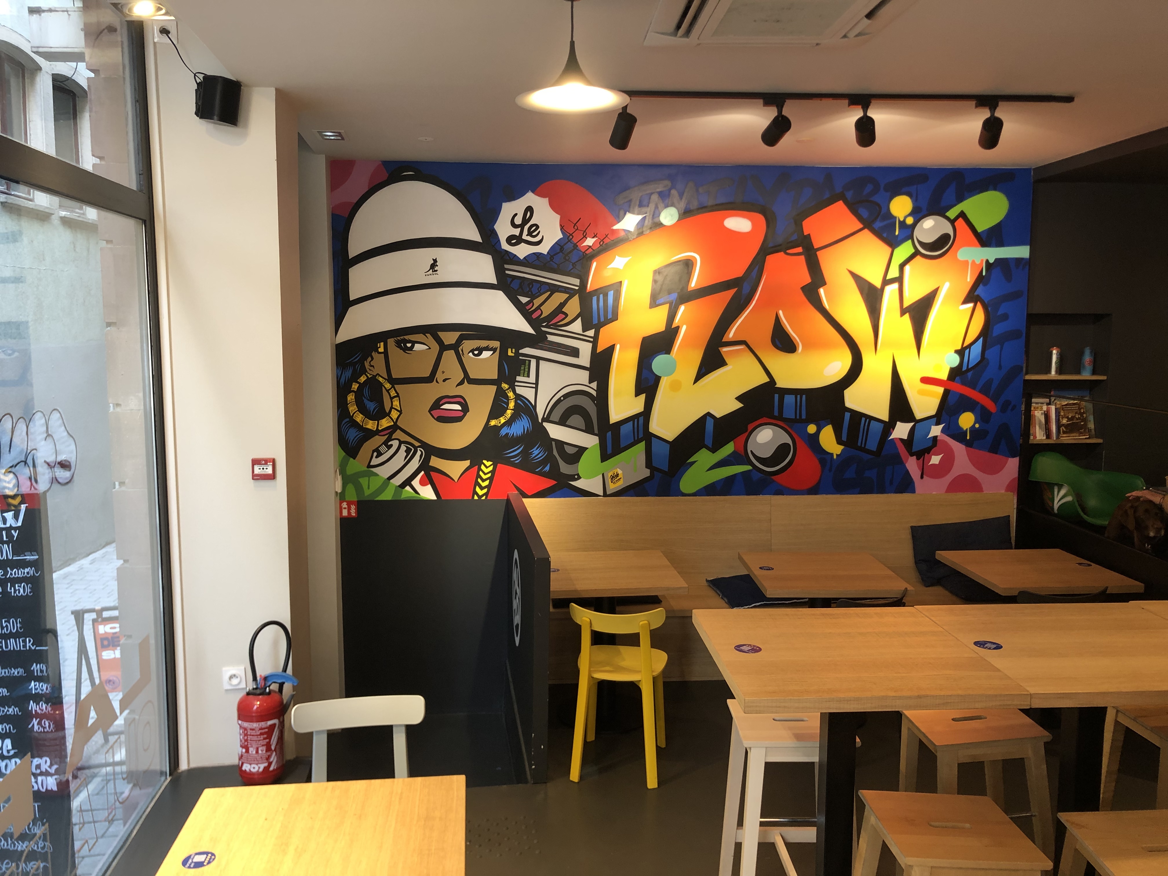 Un restaurant idéalement situé au centre ville de Strasbourg, un peu en retrait, sur une jolie place calme. La décoration intérieure est très sympa, inspirée de la culture Hip-Hop et du street art. Nous avons pris l'apéritif sur la charmante petite terrasse. J'ai eu un coup de coeur pour la planchette gourmande composée de houmous, de rillettes de poulet au citron, et d'assortiments de fromages et charcuteries très qualitatifs et goûtus. Il me tarde de revenir pour tester la formule brunch ou le déjeuner.