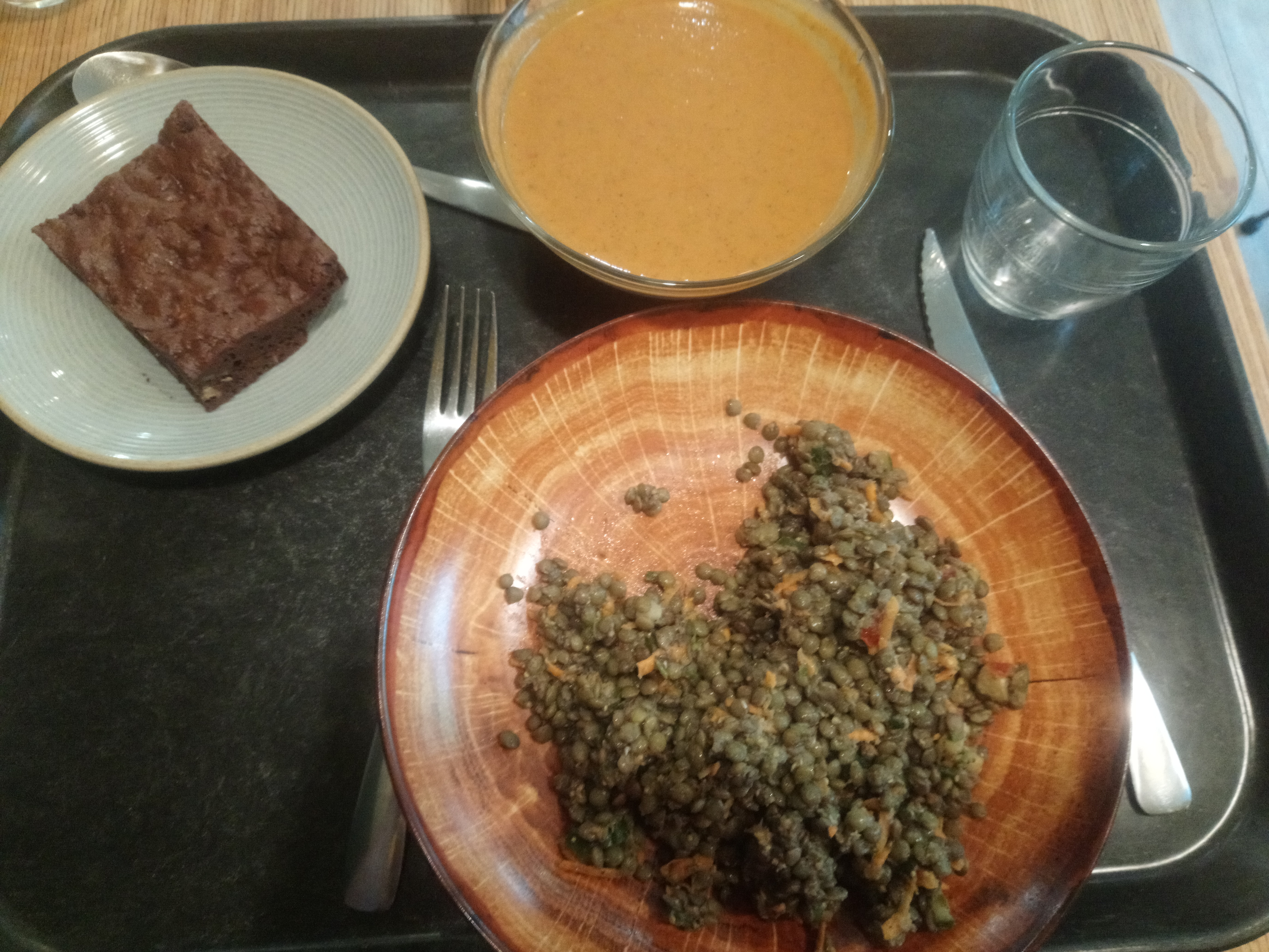Bon service, la soupe et la tarte végane&SG sont excellentes, seule déception fut le cookie vegan&SG, sans goût et beaucoup trop sucré, je trouve qu'il serait à améliorer, sinon au top :)