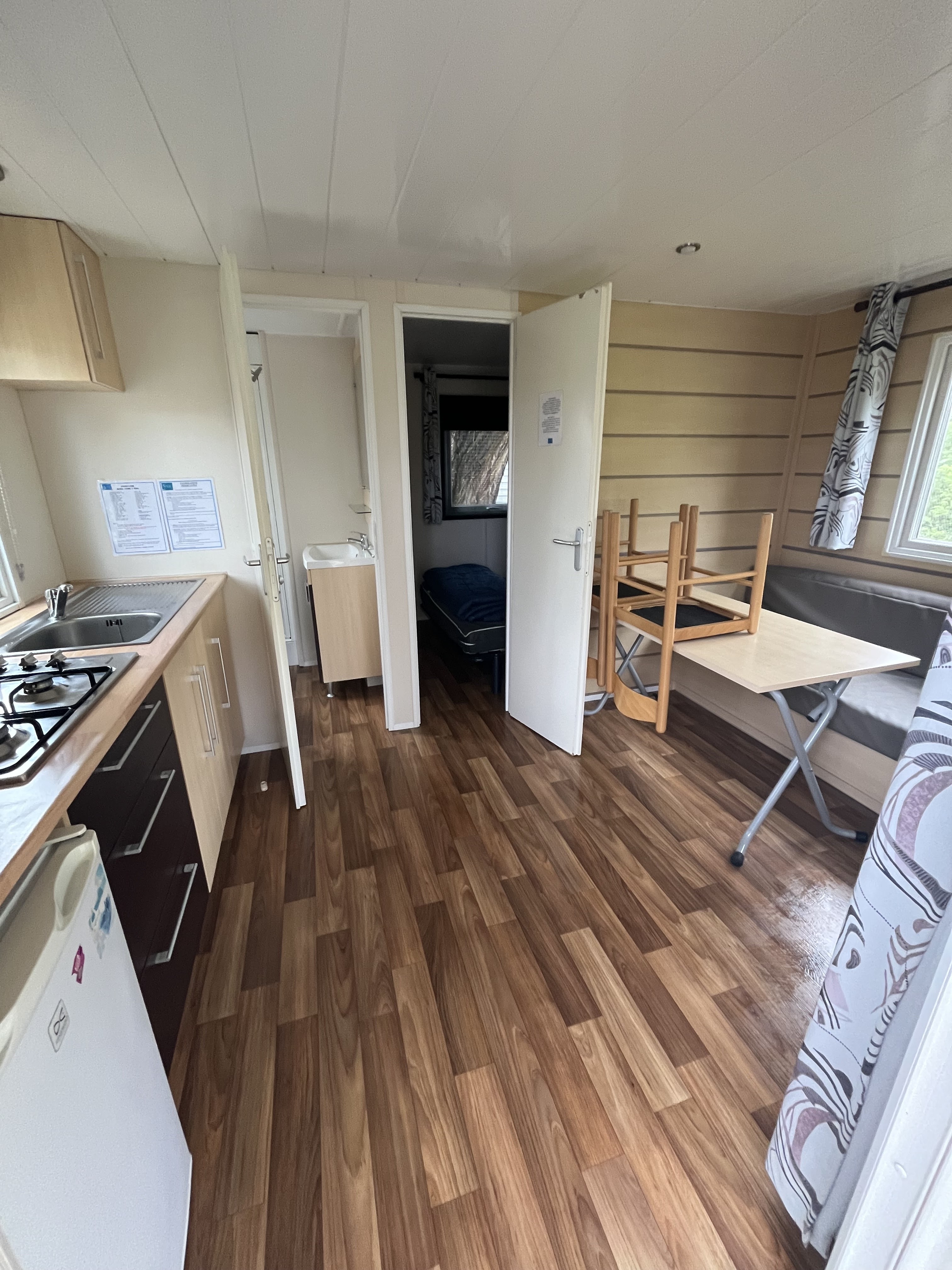 Le moblihomme est très bien mais il y a un gros problème il manque la climatisation avec cette chaleur il manque des prises électriques aussi cafetière un peu viellote pas très pratique le coin cuisine sinon on vient d'arriver il nous reste 2 semaines