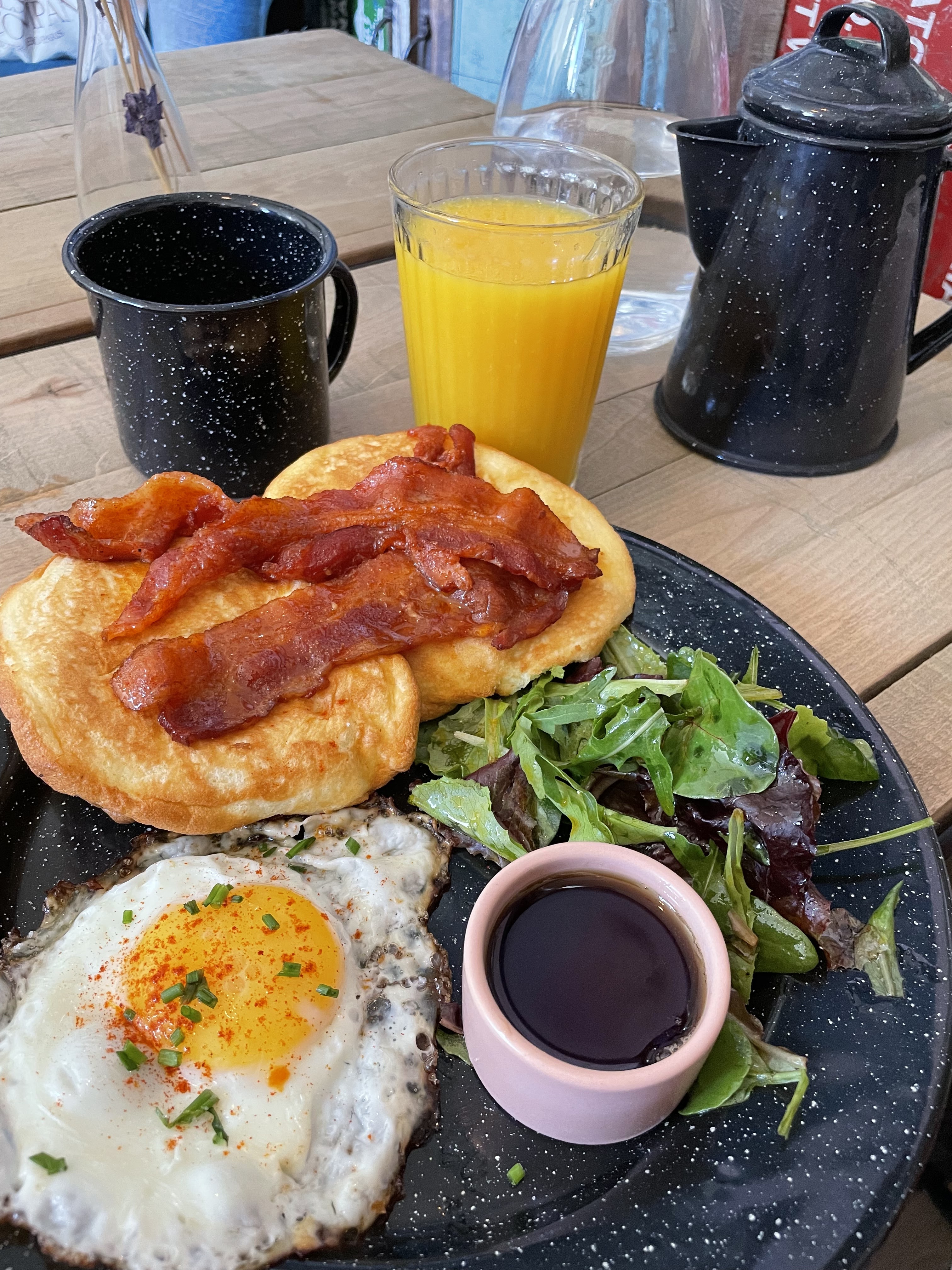 Au top ! Super brunch, très bien situé car assez central et avec possibilité de réservation, ce qui est un vrai plus sur Paris. Le menu est copieux et tout est très bon et fait maison. Les pancakes sont moelleux à souhait, pas trop sucrés, un régal ! Tout est gourmand, sans être écœurant. A noter, les boissons fraîches (notamment les jus pressés) sont servies dans de grands verres, ce qui est rarement le cas dans les brunchs parisiens et qui est très appréciable. Mention spéciale pour le service, qui est aux petits soins :) Je reviendrai avec plaisir pour goûter d'autres choses de la carte !