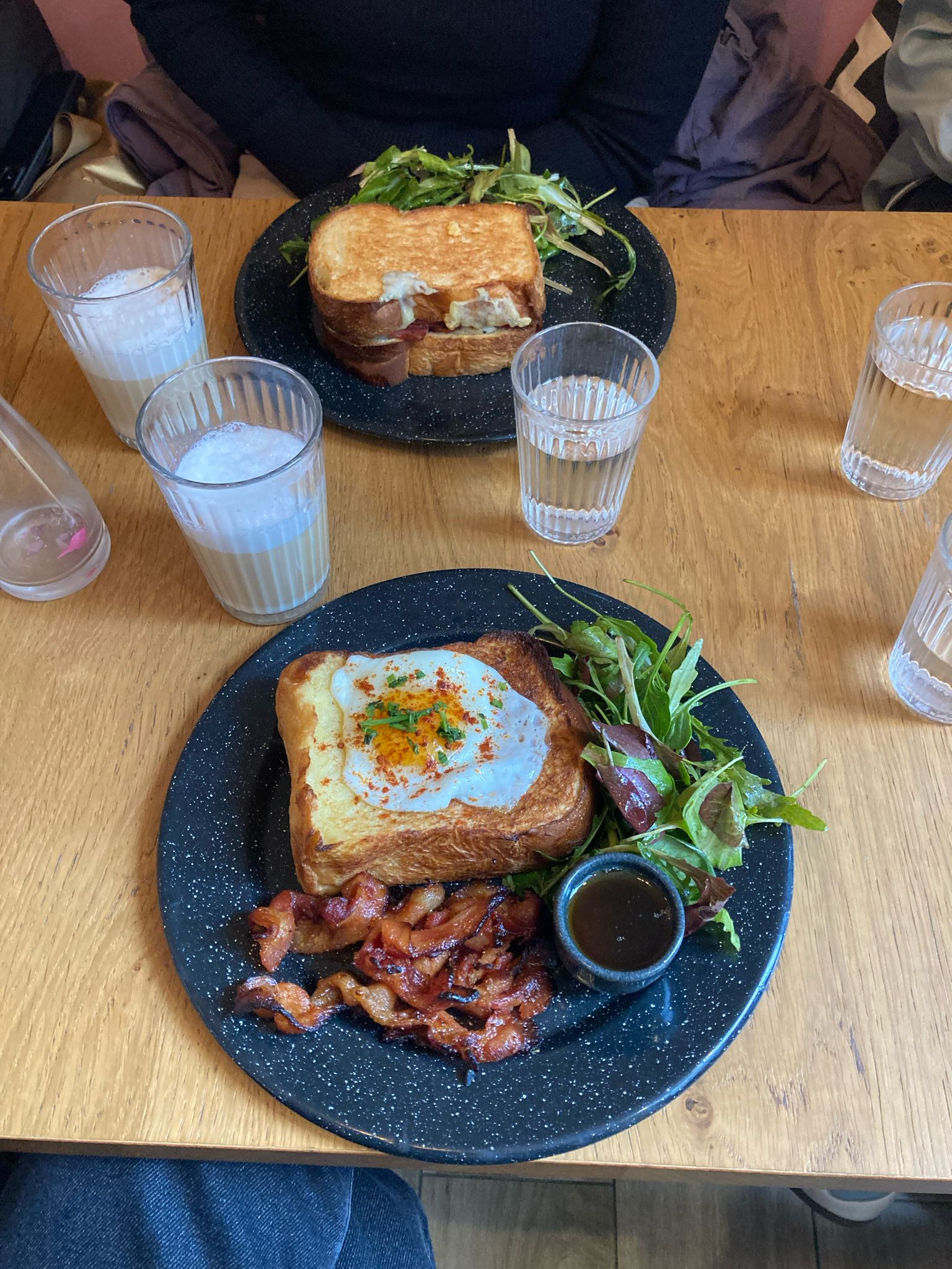 French toasts pour tous les goûts: aussi bien sucrés que salés, sur un pain sando japonais très moelleux et une jolie présentation. Service très agréable, bref, un joli kiffe!!! ♥️