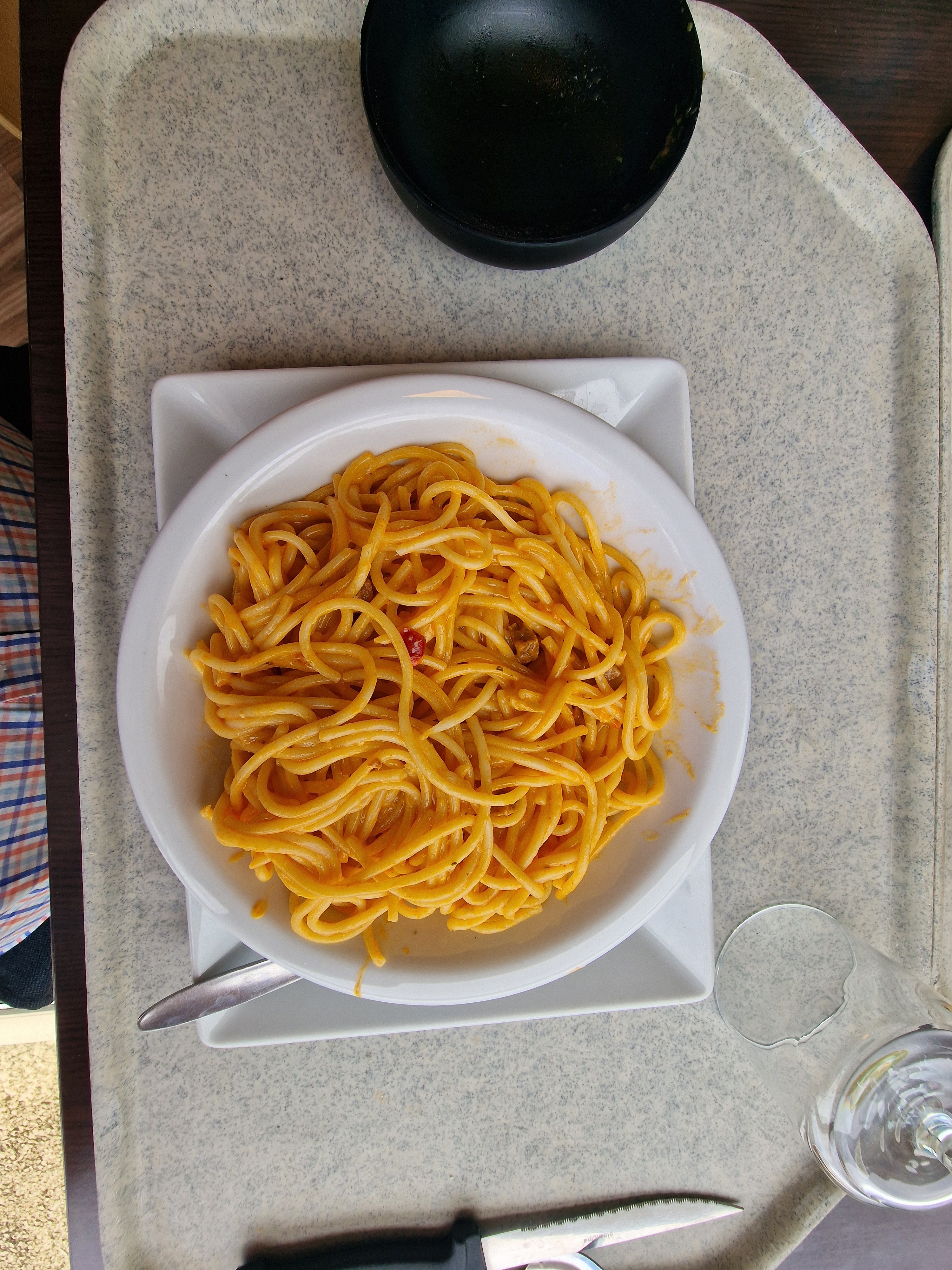 Pasta poulet chorizo... Je n'ai ni trouvé le poulet ni le chorizo. (Essayez si vous le souhaitez, y a la photo!) Le plat est froid.... bref encore un raté ! 10€90 pour une assiette de spaghetti à la tomate. Je me suis fait arnaquer une fois, ça ne m'arrivera plus jamais... Profitez des autres restaurants de la zone commerciale.