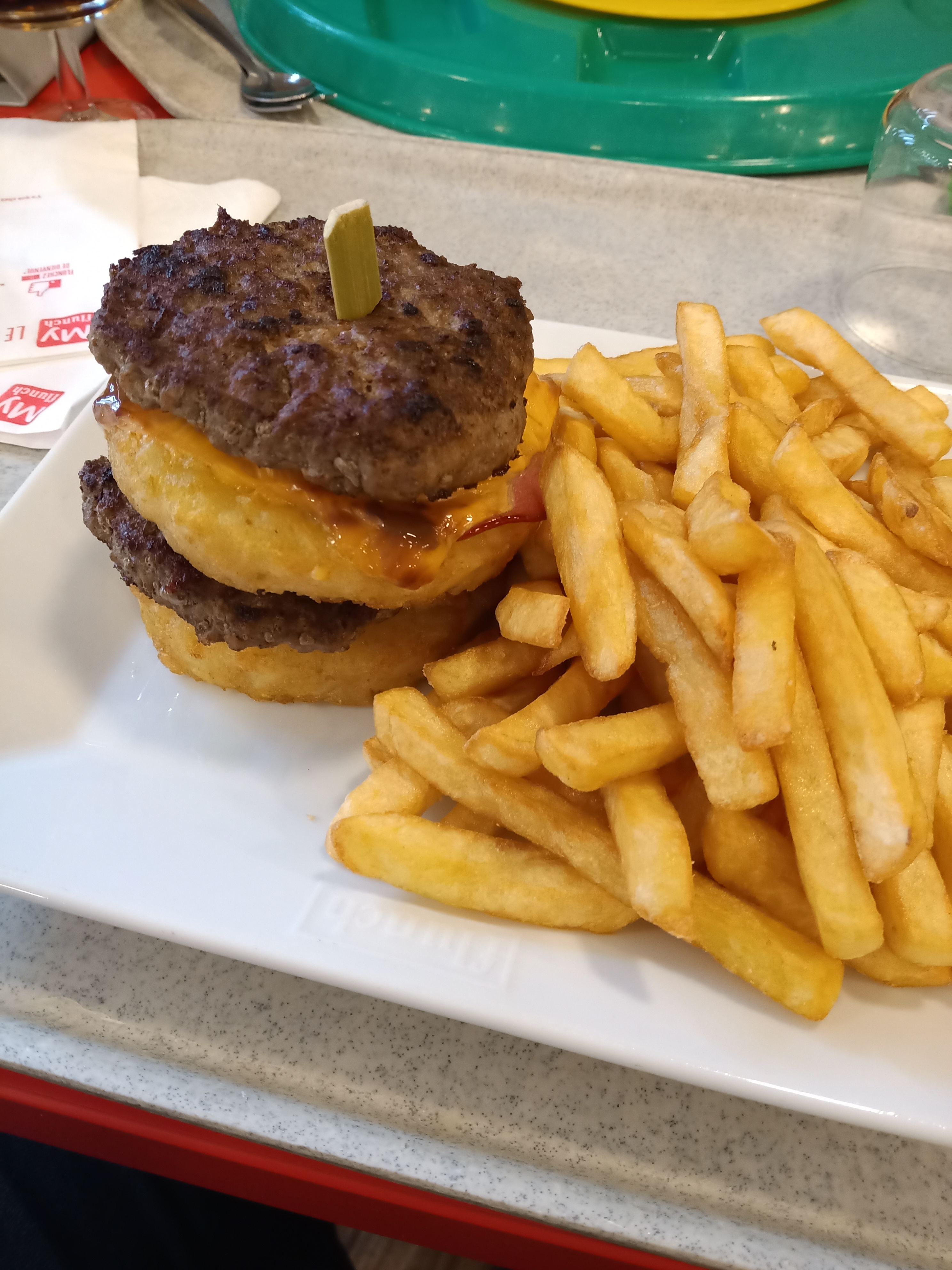 Pas trop de choix, l’hamburger, pas trop complet, comparé sur la photo et servi froid