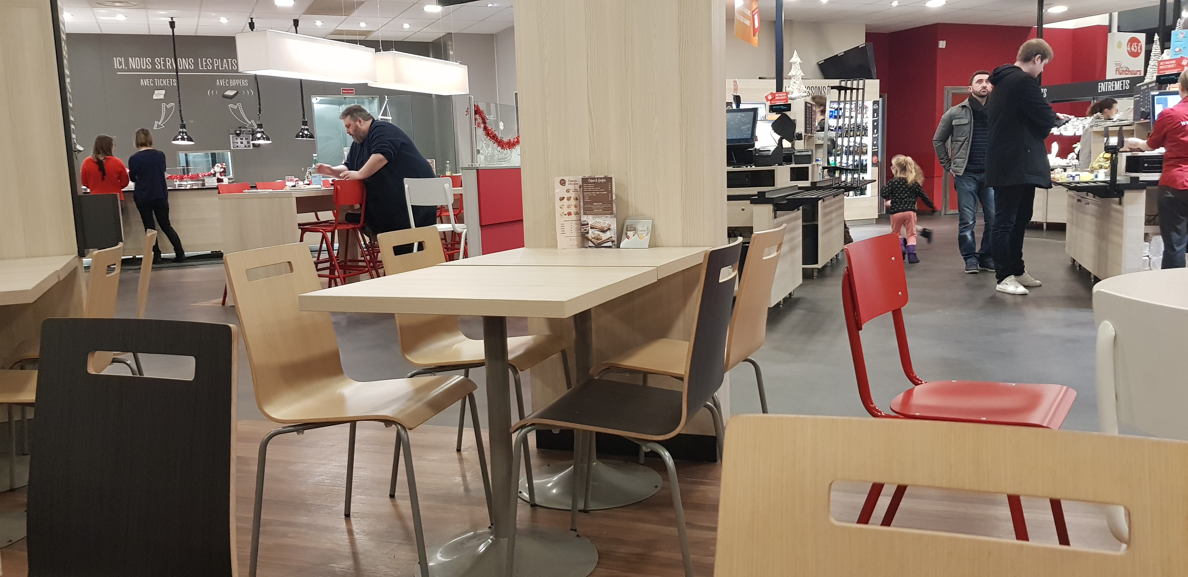 C'est flunchy , rapide , et efficace. Le seul défaut que je note. C'est la disposition des différents éléments , buffets, caisses, machines à café, qui n'est pas optimum.