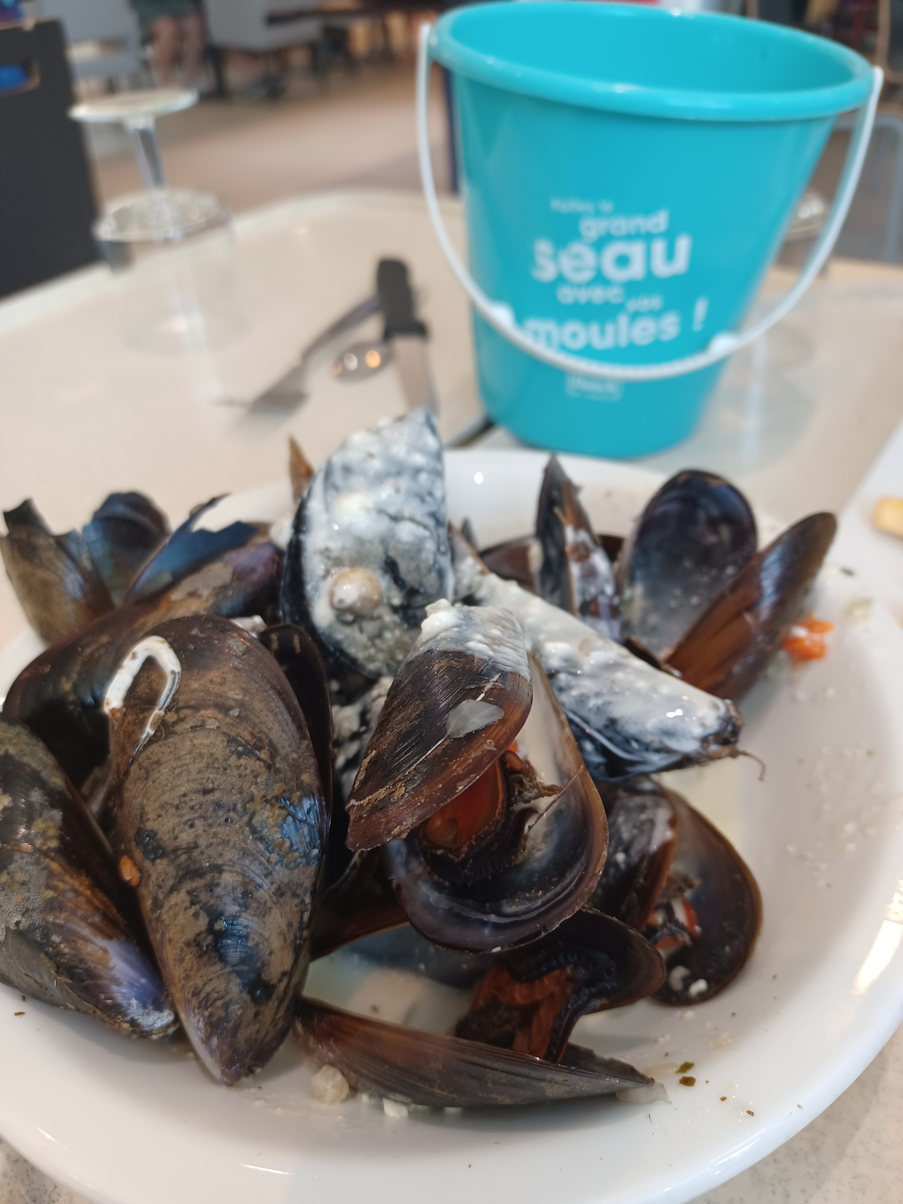 Hier soir en famille choix fait sur les moules frites à volonté menu enfant pour notre loulou on n'a bien manger personnel très sympathique surtout le mr ( nounours ) au plat chaud super sympa souriant donne envie de revenir et la fille blonde au dessert contrairement à la femme du grill qui fait limite la gueule pas agréable du tout.. par contre manque d'hygiène au toilette des femme une odeur juste horrible le lavabo tout cassé je recommande comme même