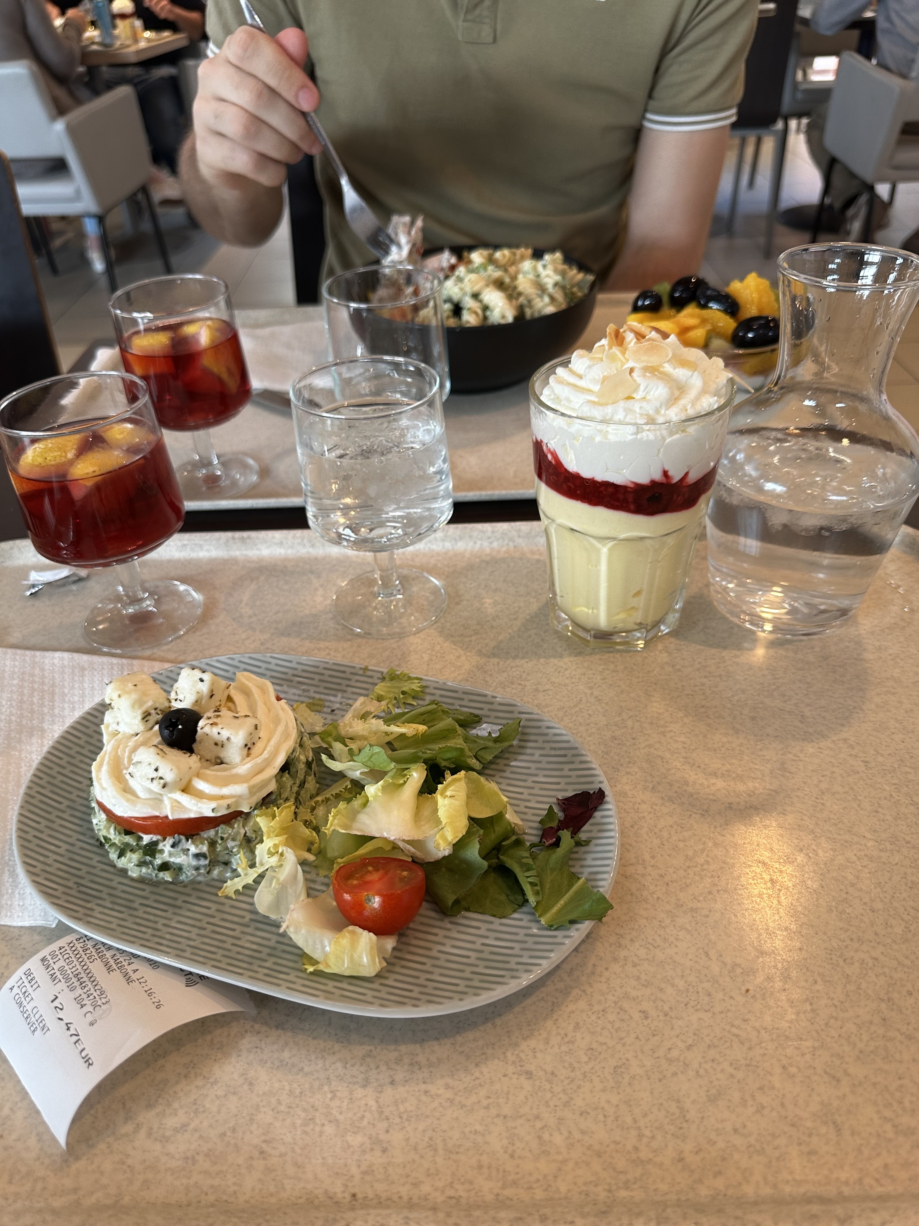 Franchement trop contraignant se système de payer et après d'aller cherché son plat chaud du coup 2 fois la queue, sinon moi j'ai prix une salade, un peu cher mais bonne