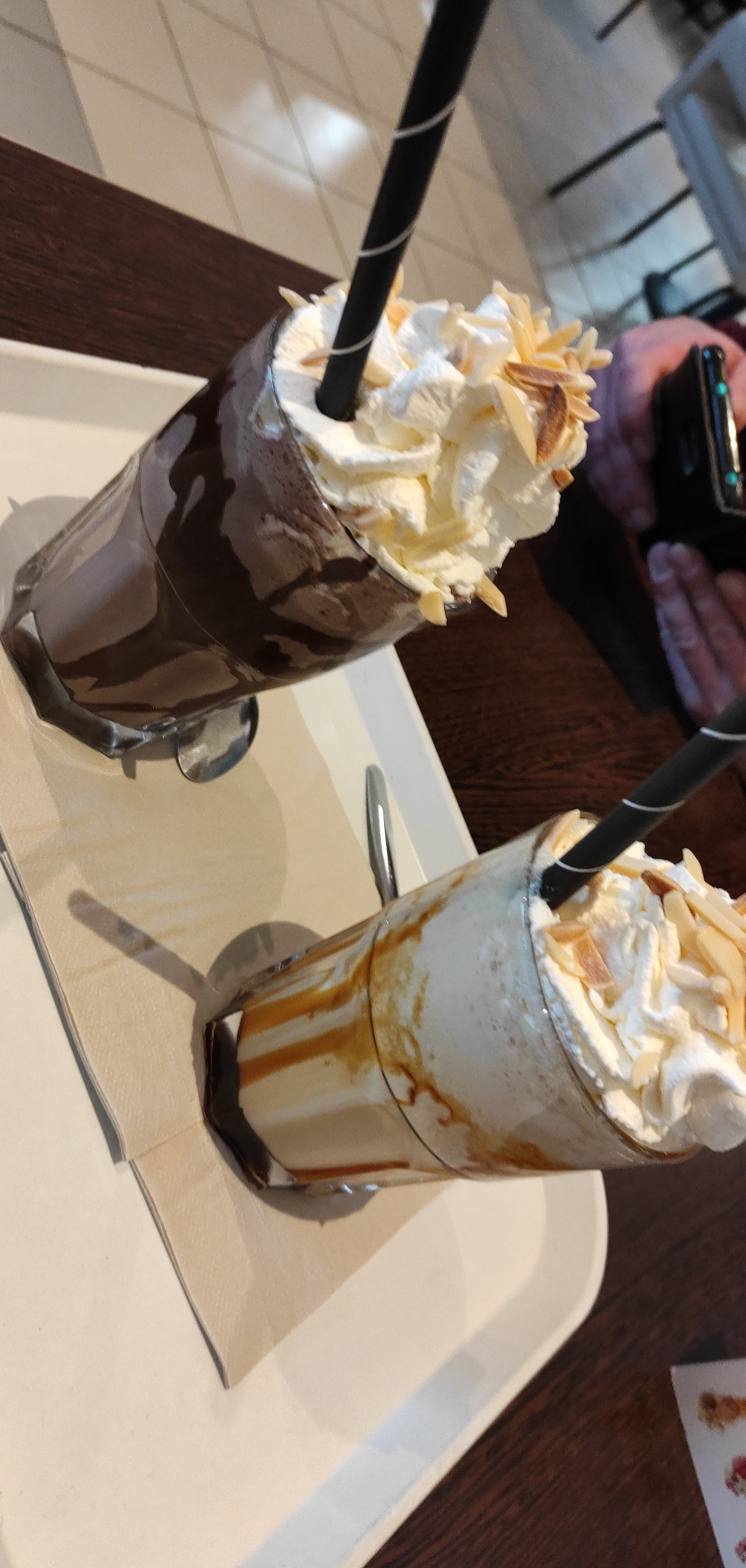 Le chocolat chaud n'avait goût qu'à l'eau... La gaufre était un peu sèche. Dommage parce que j'aime bien cette enseigne en général. Edit janvier 2022 : milkshake super bons juste mauvais topping c'est dommage