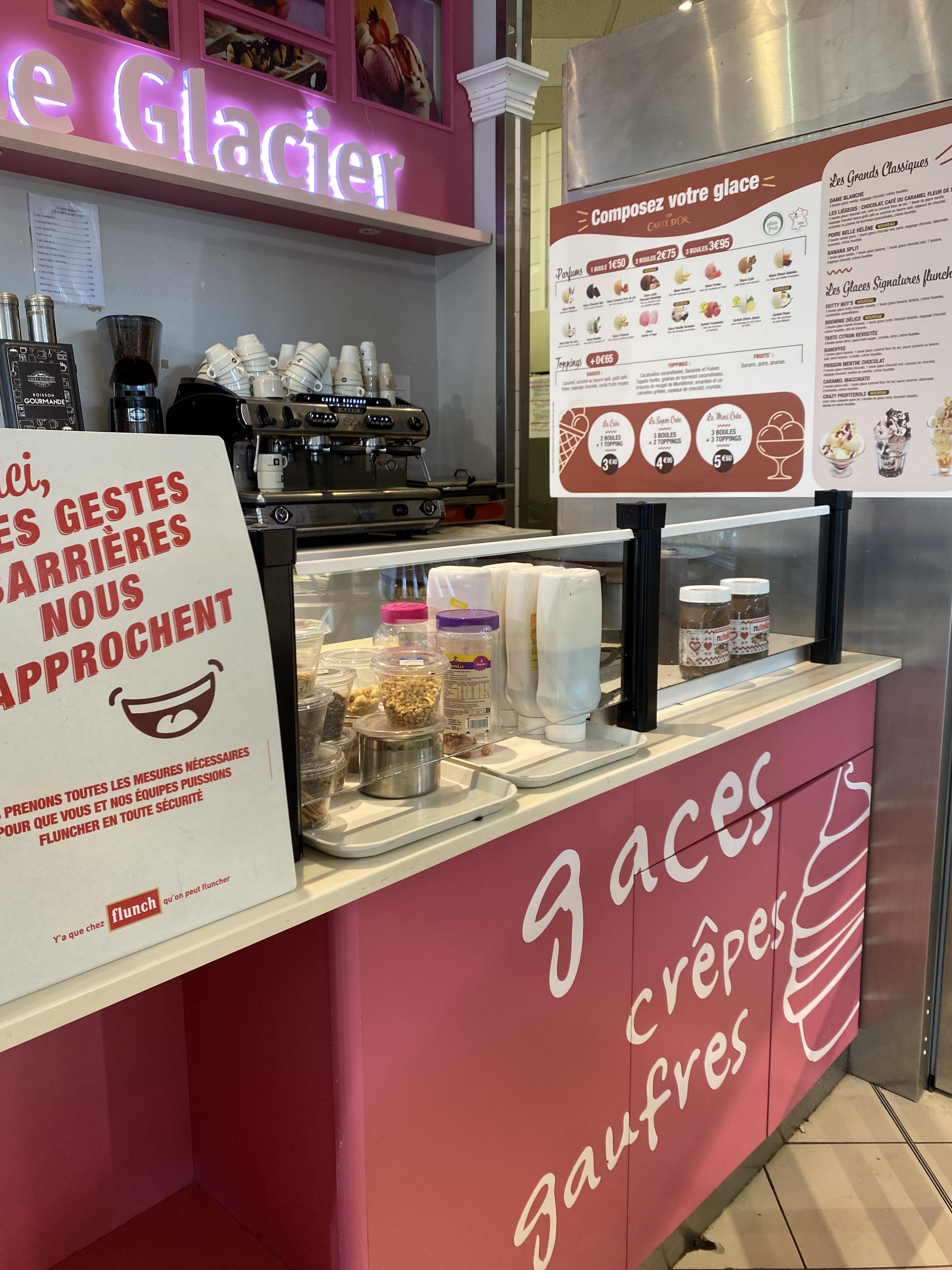 Pourquoi ouvrir un coin glacier crêpes avec une personne pour servir, encaisser? En pleine après-midi ??? Venir en renfort quand l'employé ne s'en sort pas???? Manquerait-il pas de formation? Manquerait-il pas de personnel?