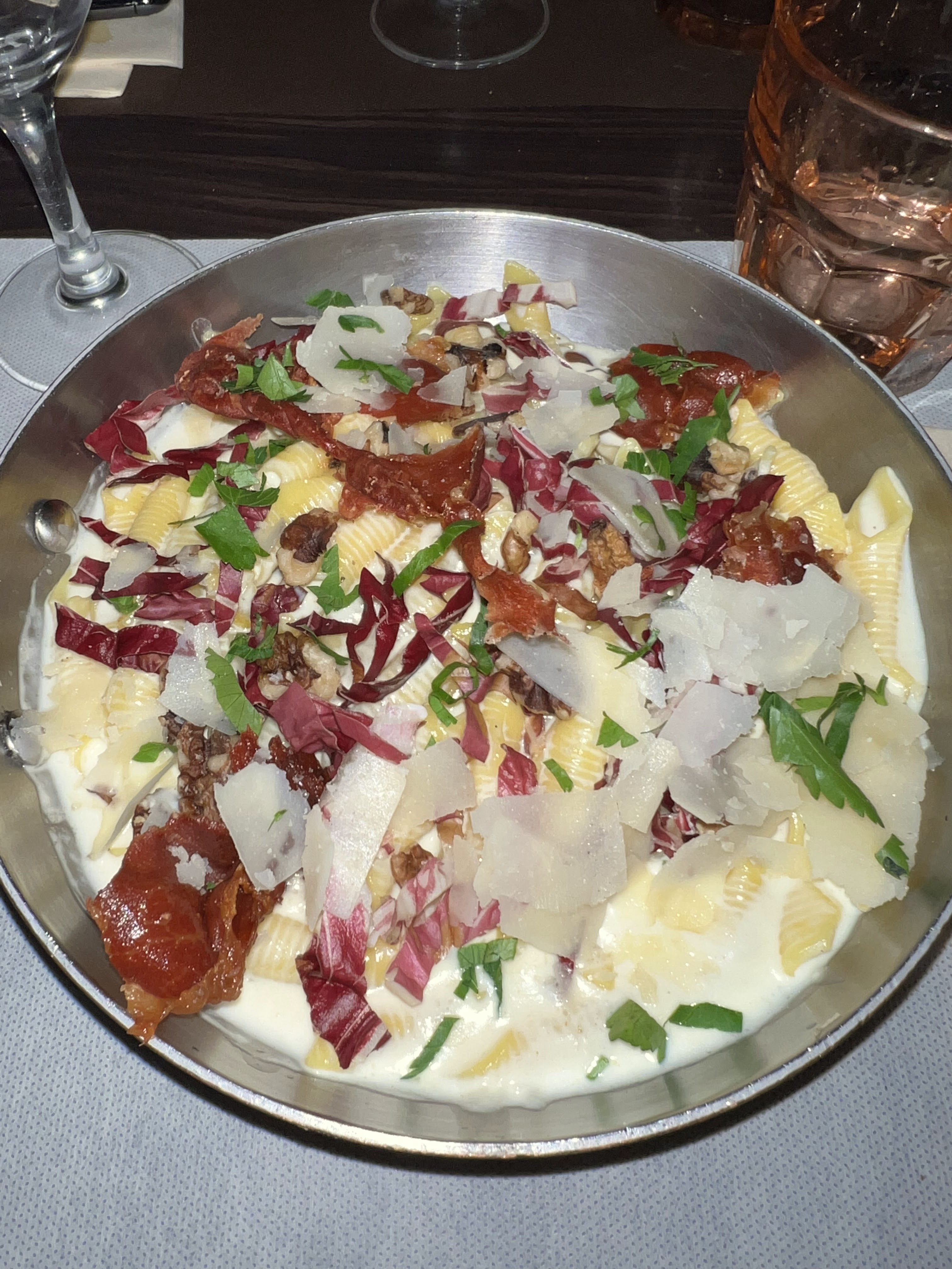 Dans une lumière tamisée, un cadre élégant, nous avons déjeuner à 8 personnes, multiple choix de plats italiens, assiettes copieuses, pizza de qualité. Service rapide et aimable.