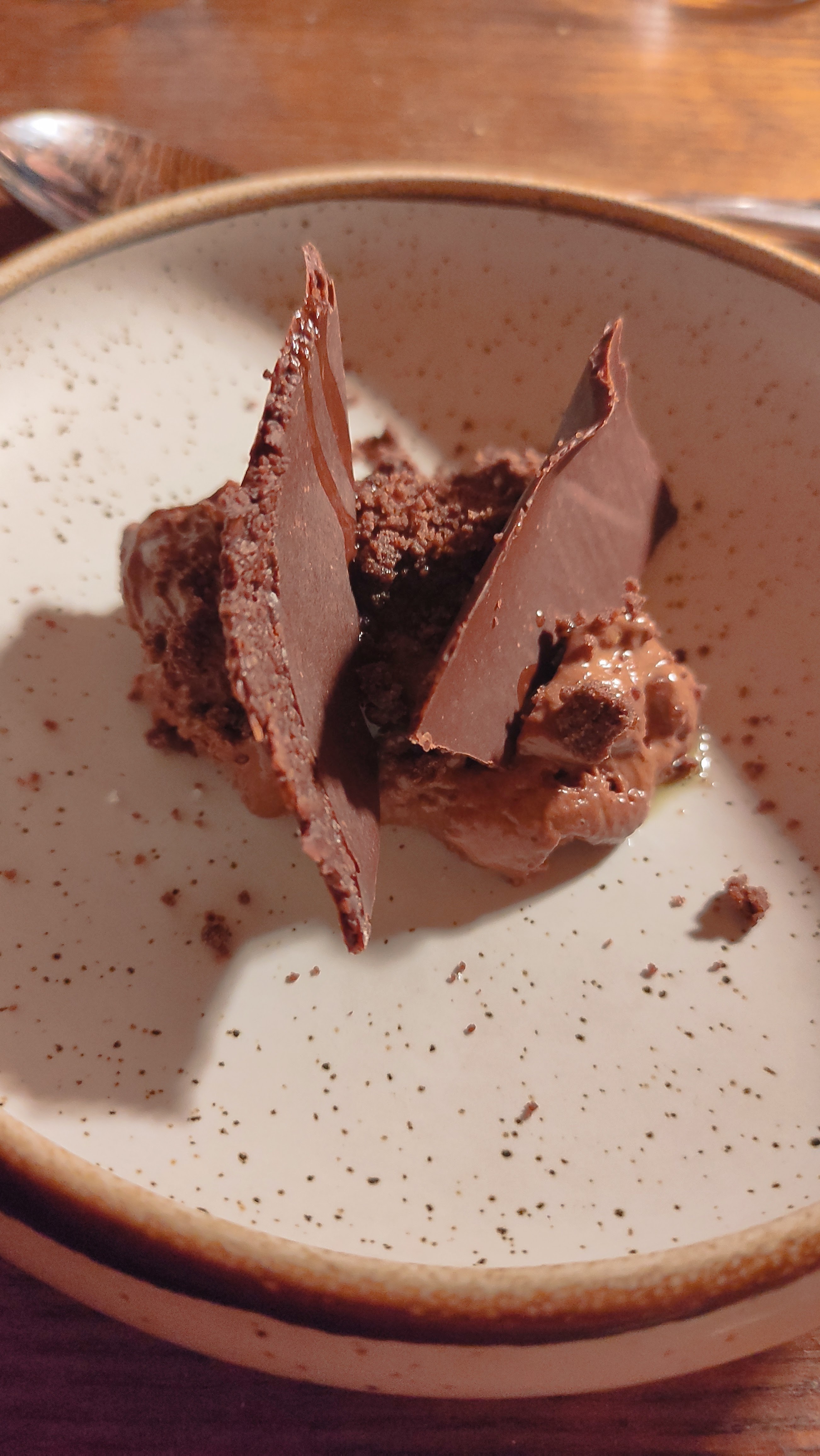 Atmosphère très intimiste, propice à l’échange et à la conversation. On adorait le concept de ne pas forcément savoir ce qu’on a dans l’assiette, ça nous fait jouer aux devinettes ! Sinon les serveurs et les cuisiniers sont au top, l’accueil est chaleureux et la cuisine est excellente ! Ce qui m’a le plus marqué c’est la recherche dans les sauces. Dernier point mais pas des moindres, si comme moi vous n’y connaissez rien en vin, le serveur/sommelier est de très bon conseils pour faire le meilleur choix en fonction du repas mystère. 😌