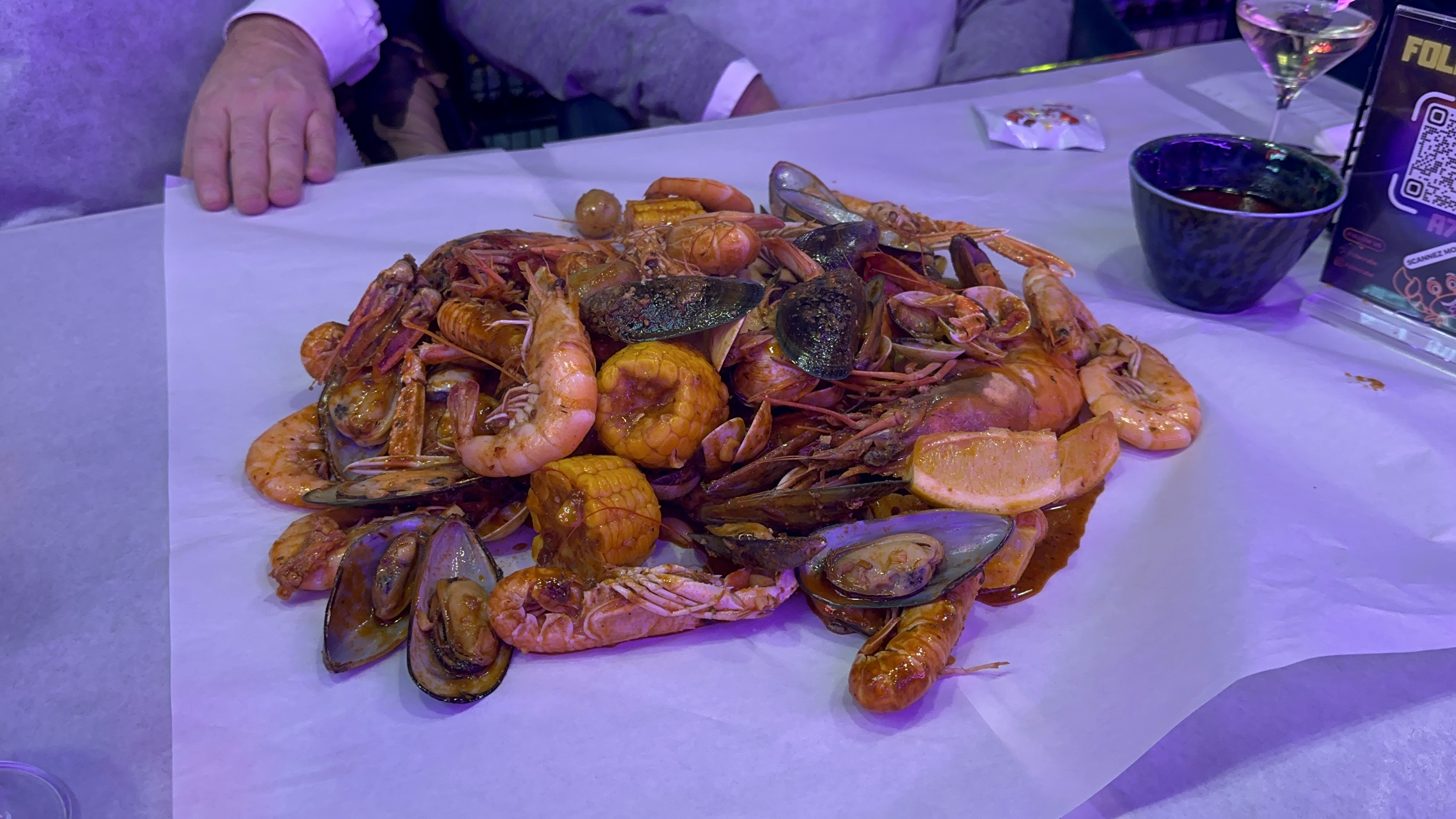 Disproportion quantité/prix. La sauce est une tuerie... MAIS nous avions réserver une table pour 4 et nous avions naivement opté pour la formule 4 personnes, sans savoir que l'on finirait par devoir faire un autre restaurant. Je veux bien que les crustacés soient chères mais c'est radin sur la quantité des accompagnements. La formule nous limite à une pomme de terre grenaille et un quart de maïs.... Gros bémol sur la saucisse, qui n'est d'autre que 5 morceaux de cachir en batailles. Il y a volonté claire de nous faire ajouter des éléments à notre formule pour espérer être rassasier et renflouer leur caisse. Et bien dommage de ne pas pouvoir profiter de l'ambiance que promet d'offrir le restau car les clients sont traités à la chaîne.
