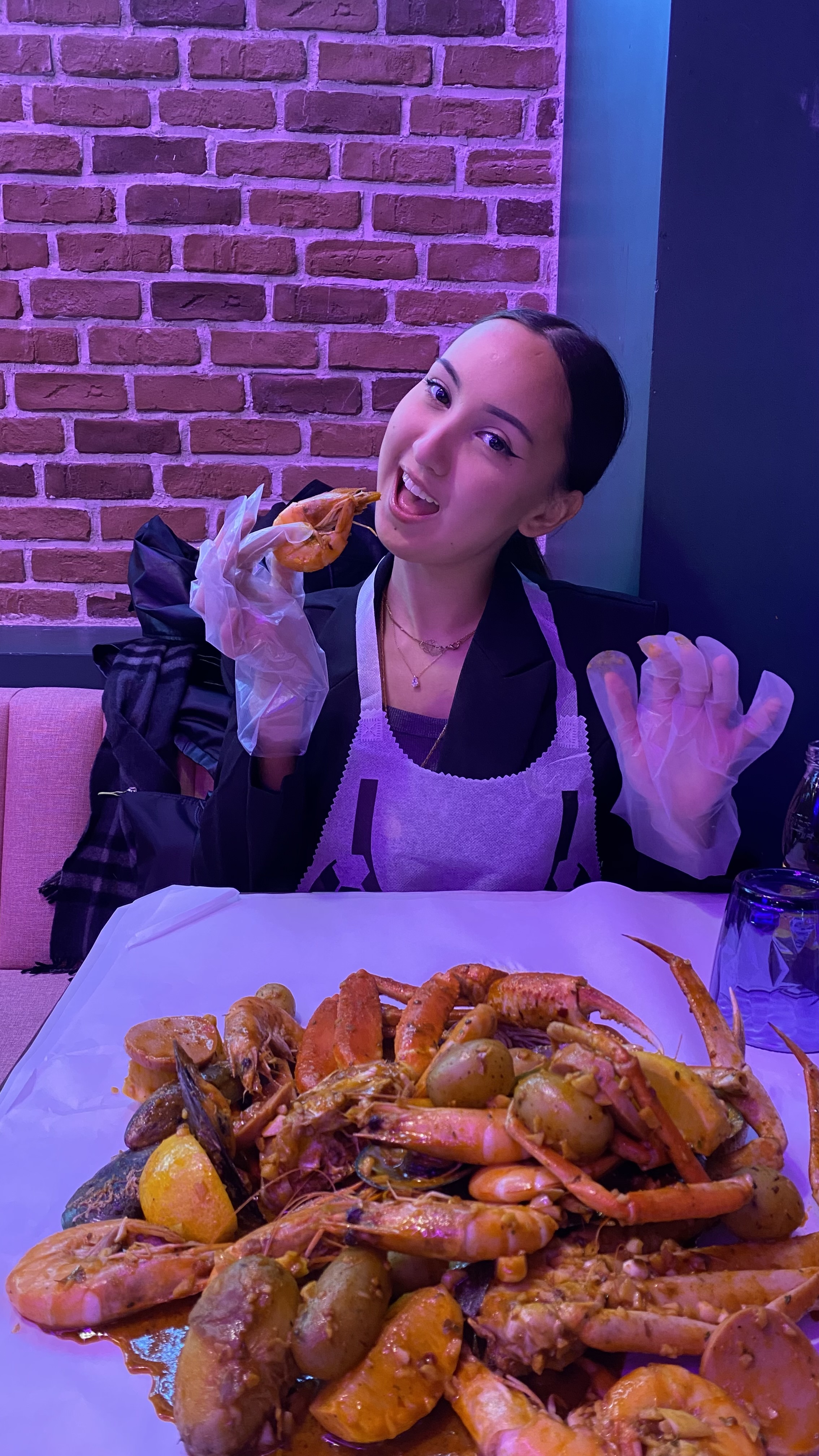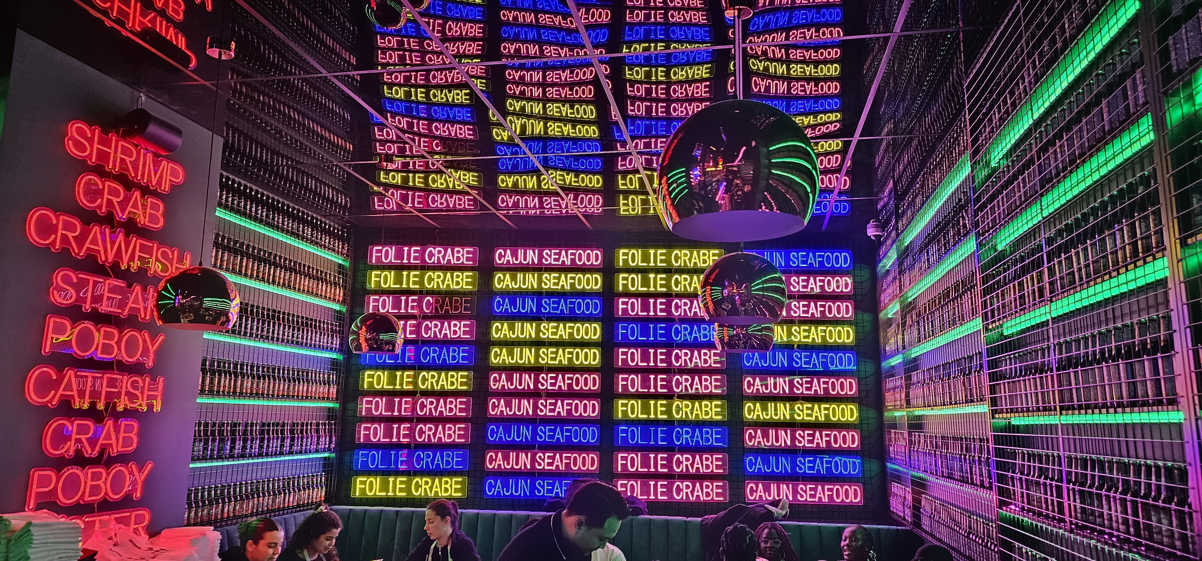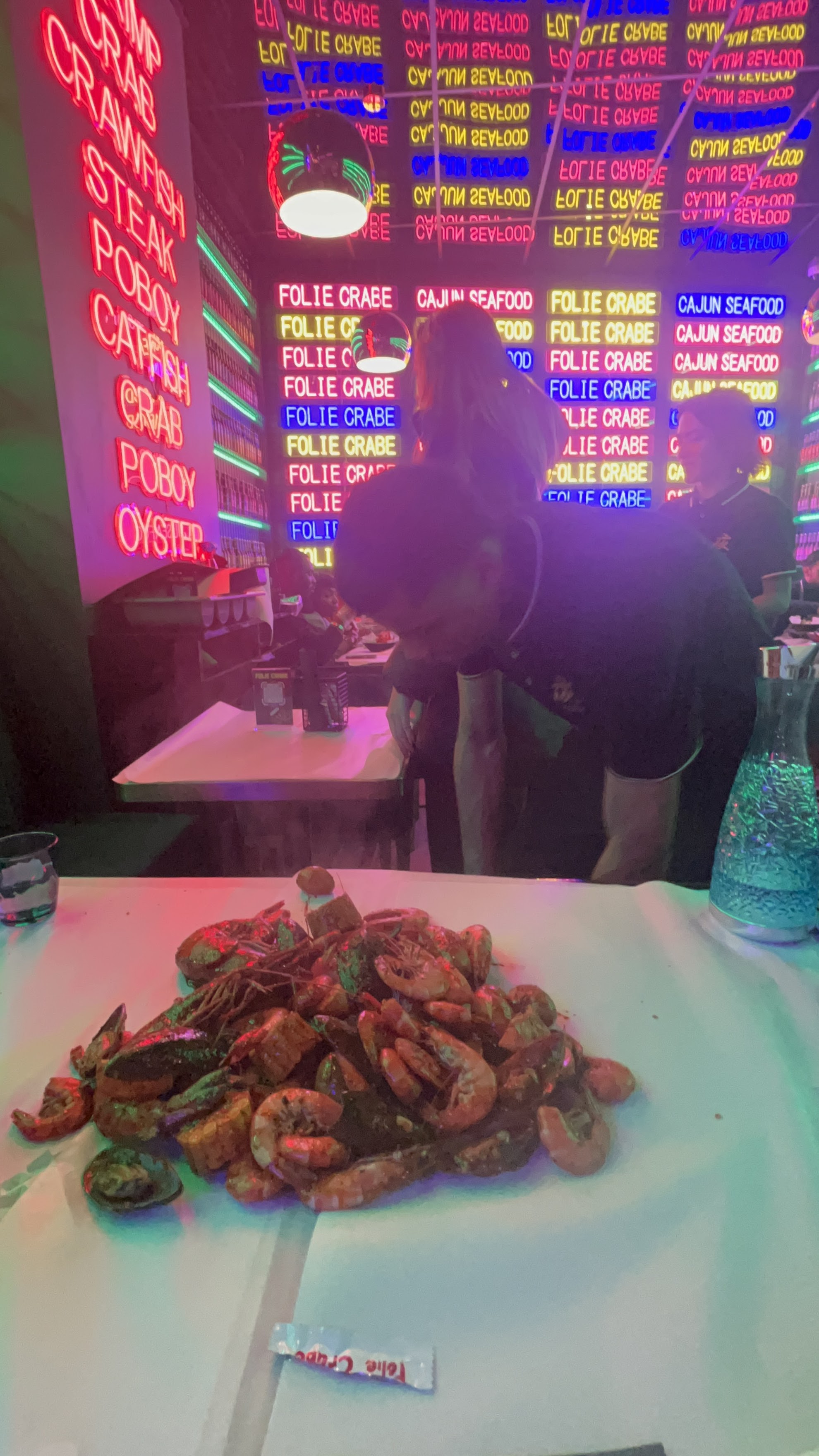 Très bonne expérience, un resto au concept très original comme on aime ! Ici on nous sert des fruits de mer épicés à la demande, sans chichis à même la table, les gants et le tablier sont de rigueur :) Et la déco tout en néons colorés est également super sympa, l'ambiance est excellente.