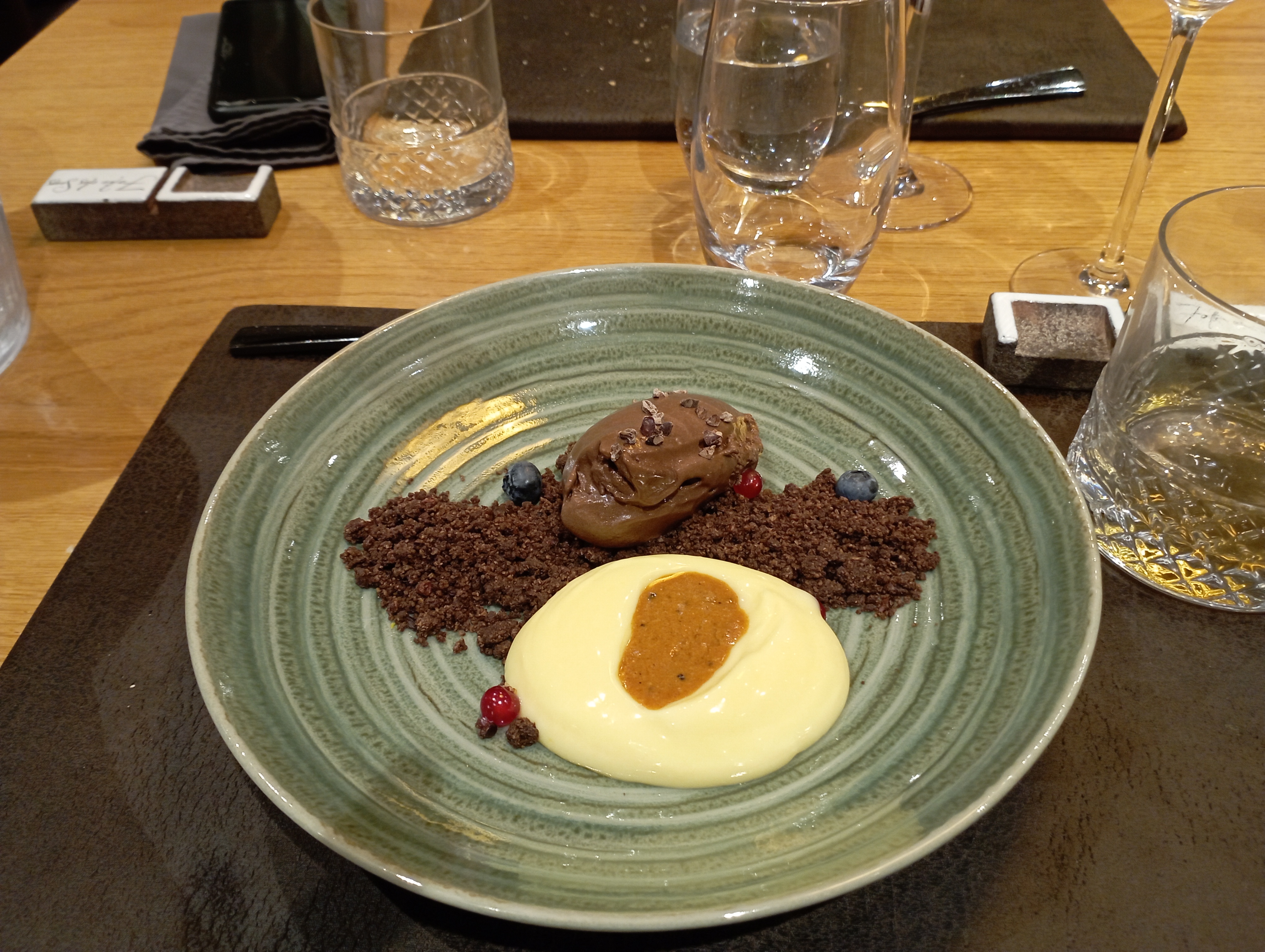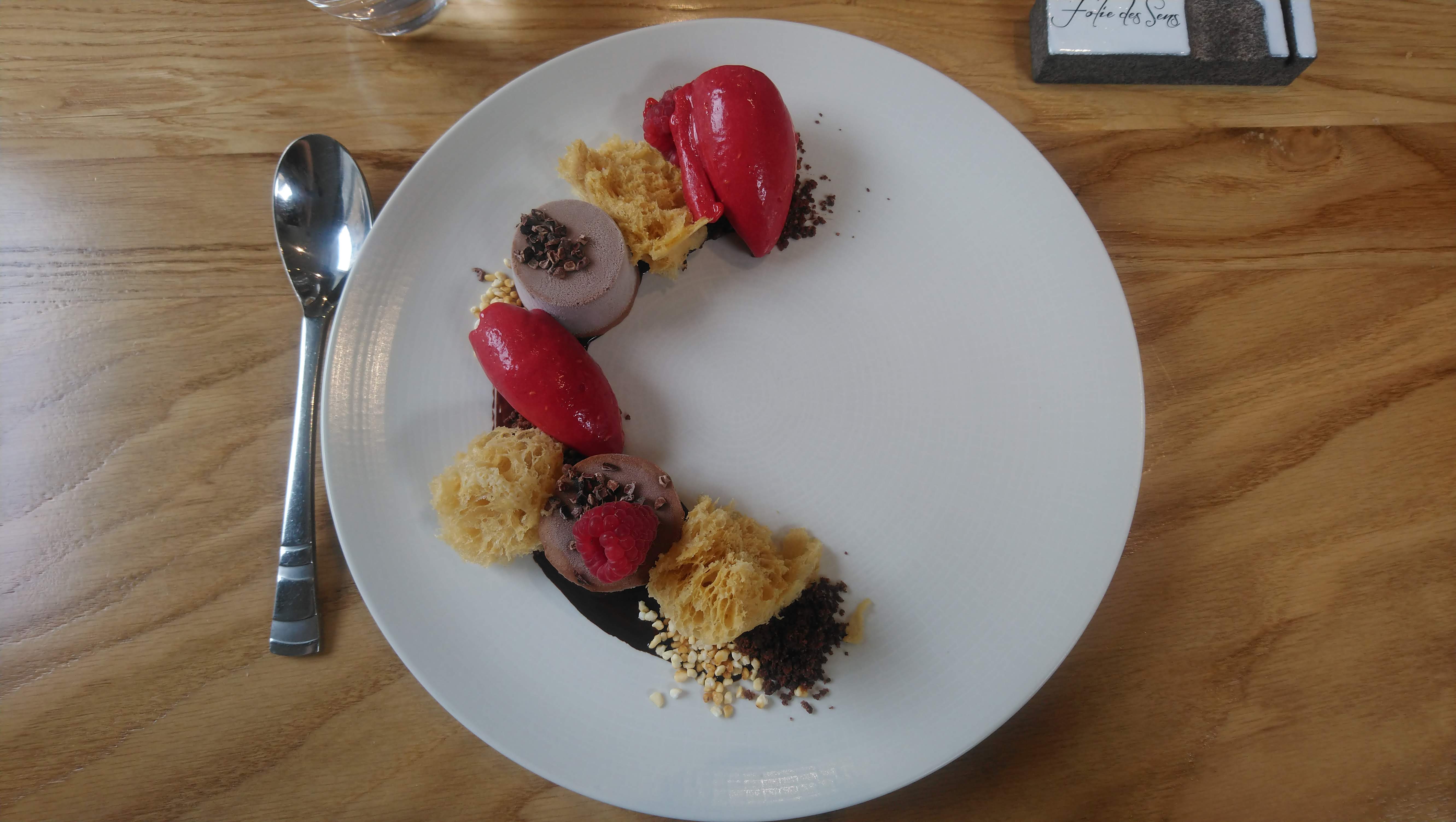 J'ai vécu un moment culinaire absolument exceptionnel de l'entrée au dessert ! Mais particulièrement avec ce dessert ! (Photo) Quand je regardais des émissions culinaire, je ne comprenais pas que l'on puisse ressentir de telles choses en mangeant un plat. Et j'ai ressenti des émotions à chaque bouchée... Nous étions 2, et nous avons terminé ce repas en disant que c'était 《LE》meilleur dessert que nous avons mangé de toute notre vie. Des saveurs, des parfums et des textures ... j'en ai encore le goût en l'écrivant... L'entrée et le plat était également à tomber ! Je recommande fortement cette merveilleuse adresse avec son restaurant chaleureux, sa terrasse très agréable, son service parfait (merci à la jeune serveuse très professionnelle et adorable, douce et très souriante). Si vous cherchez un restaurant sur St Flour, alors n'hésitez pas un instant et rendez-vous à Folie des Sens...