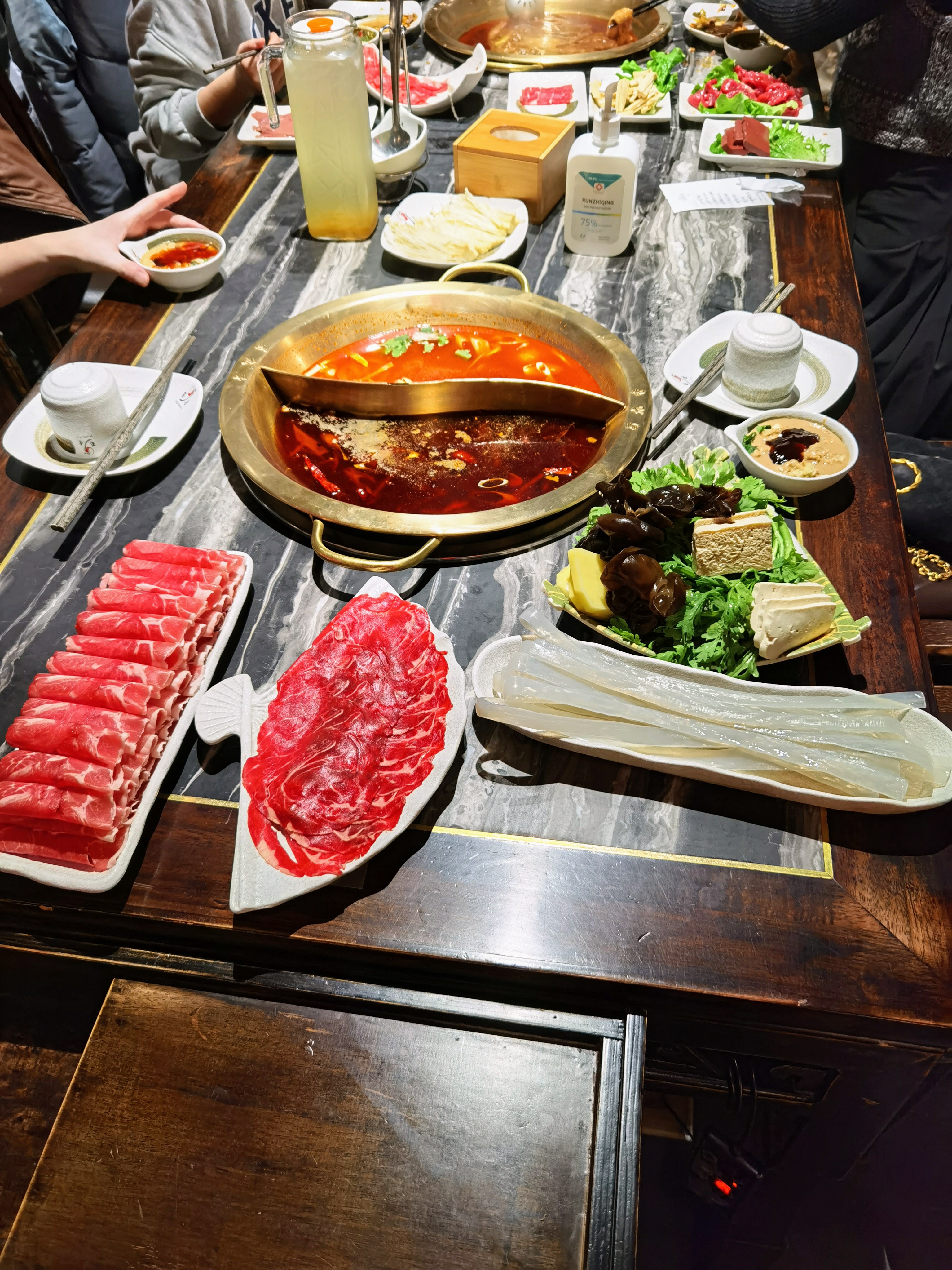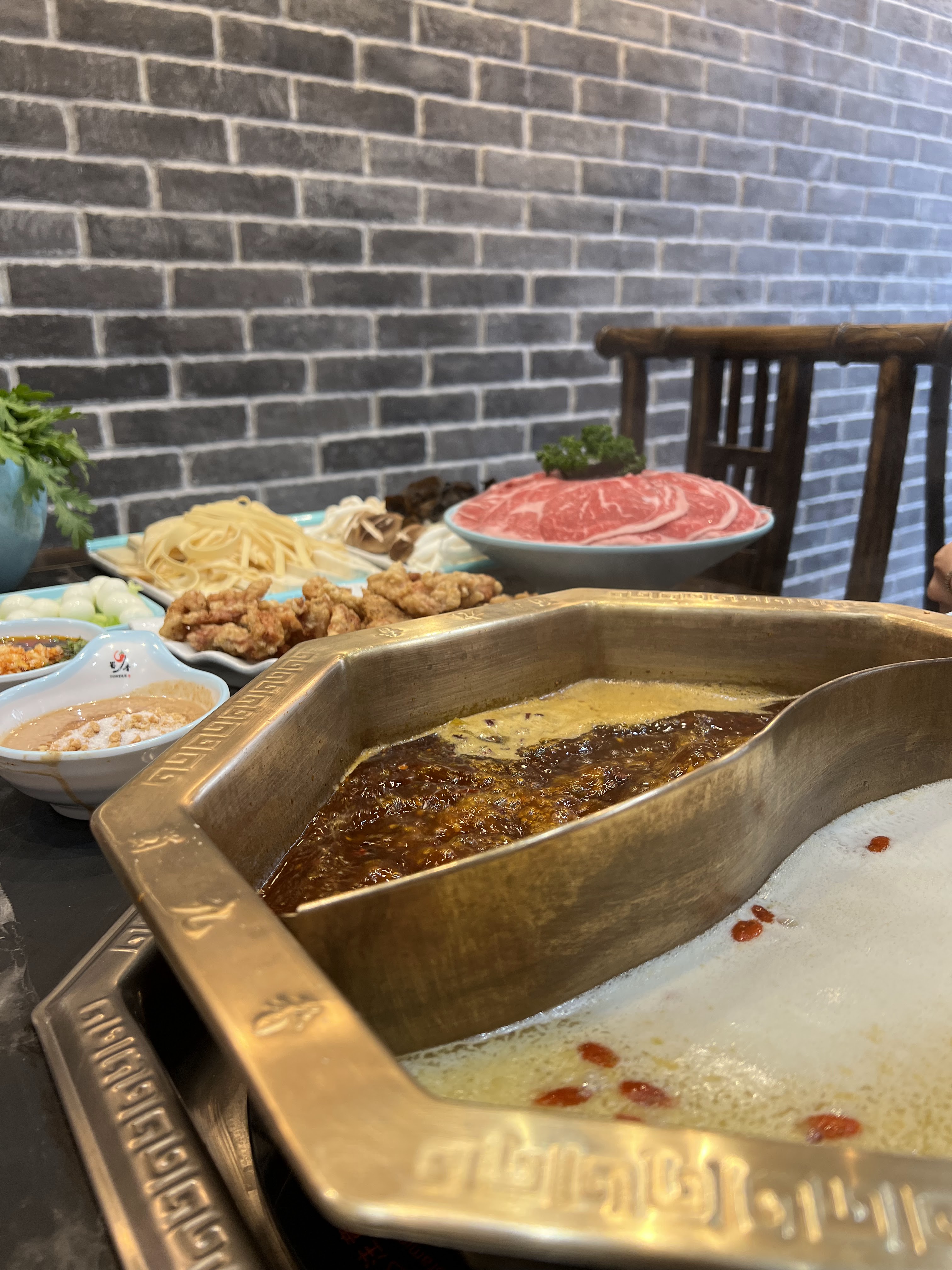 Nous avons été attirés par ce restaurant lors d'un simple passage, à cause de l'odeur incroyable qui s'en dégage. L'ambiance à l'intérieur est géniale, le personnel est très sympathique et serviable et le menu est riche. Nous avons commandé un menu pour deux personnes et les portions étaient immenses. C'était la première fois que nous essayions le concept de hot pot, donc c'est facilement devenu assez compliqué, mais nous sommes définitivement restés avec une expérience étonnante et amusante. Tout était bon et le prix était vraiment raisonnable.