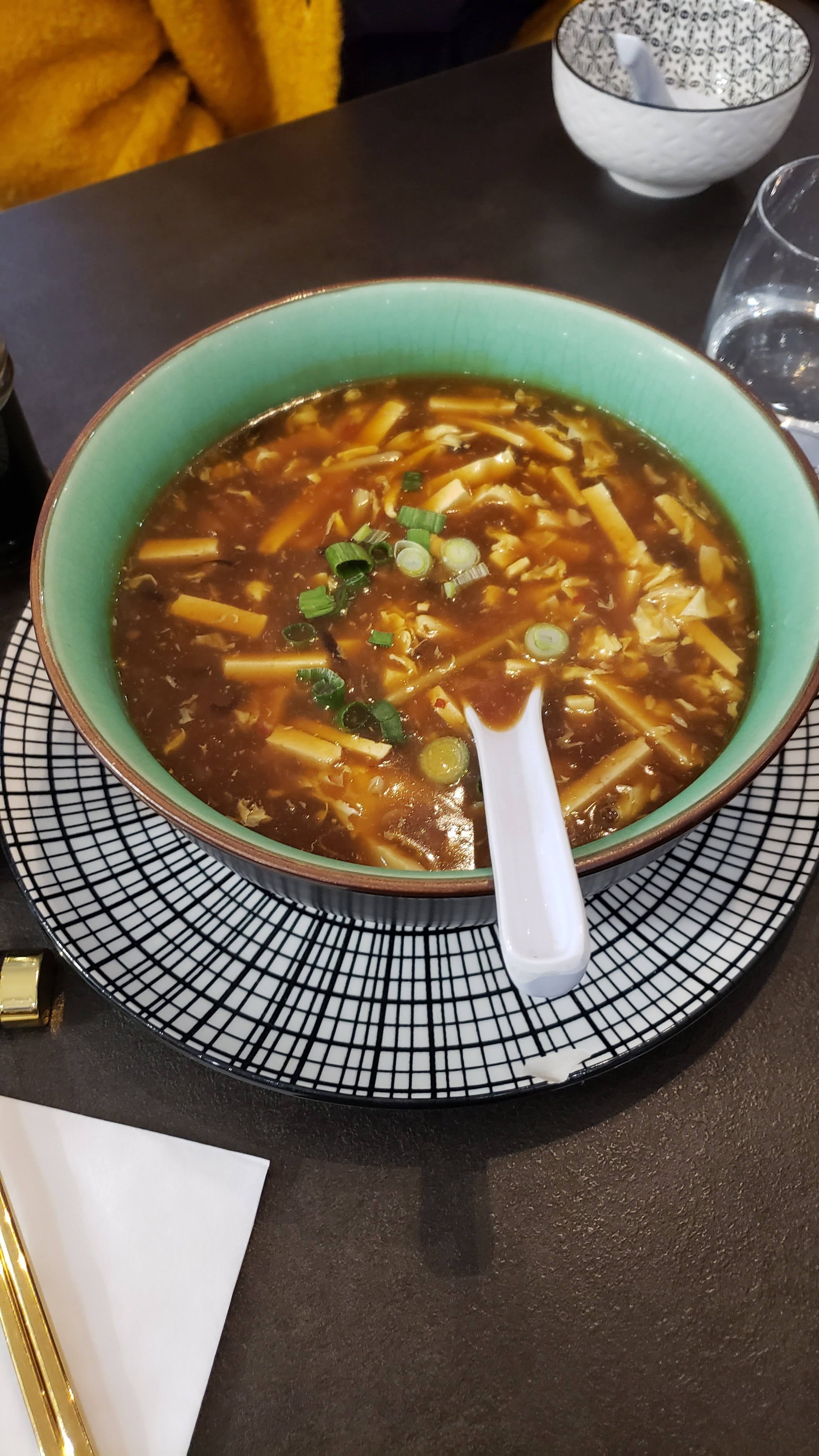 Première expérience ce vendredi 8 décembre 2023 avec un ami, très connaisseur de la cuisine asiatique. Essai transformé, le rapport qualité/prix est excellent, la nourriture également, le service efficace ( le midi c'est important) et amabilité de l'ensemble de l'équipe. D'ailleurs un détail ne trompe pas, les voisins sont devenus des habitués, on les voit rentrer et sortir en tutoyant l'équipe du restaurant. Je recommande a 100%. Coucou, je suis retourné le 12 décembre goûter leur fameuse soupe ravioli avec crevettes, un régal. Voir photo ci-dessous. Yves Paris 75011
