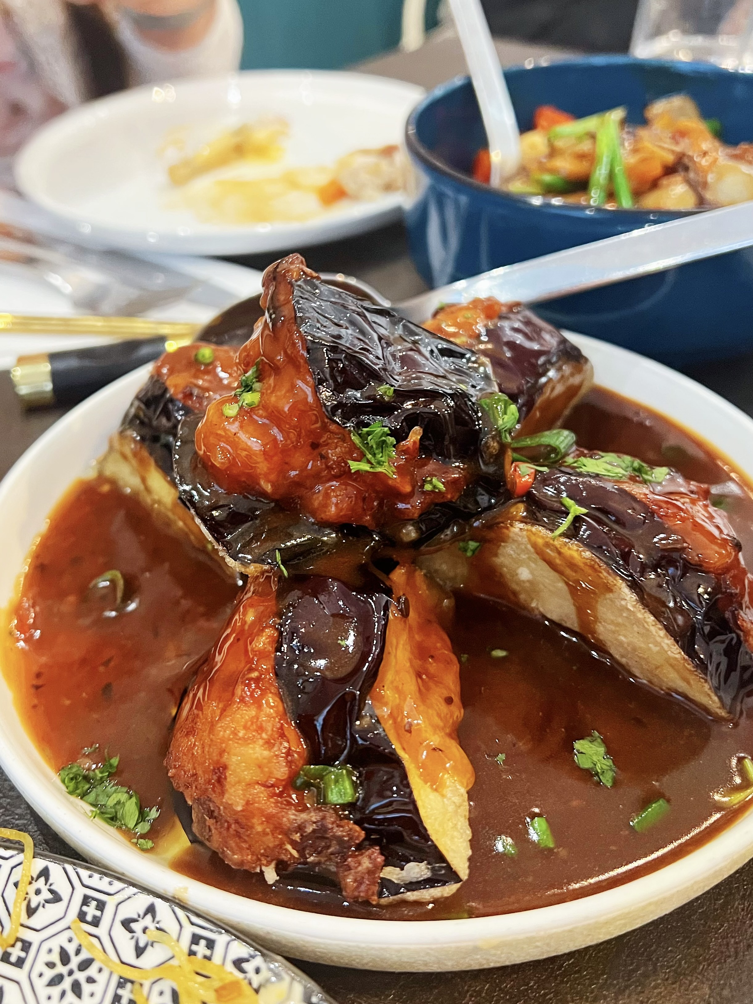 [Mise à jour 10/2022] Trois ans après : le plat à emporter est passé à 9€, et la barquette auparavant emplie à raz bord (gonflée sur le dessus sous le film alimentaire) pèse très nettement moins lourd (nouilles chichement mesurées). Dommage. *** [Sept. 2019] Le restau a été refait à neuf, du coup je suis entré prendre un plat à emporter : aubergines farcies aux crevettes (ma spécialité maison préférée avec le poulet du chef), et nouilles sautées. Parfait (7€).