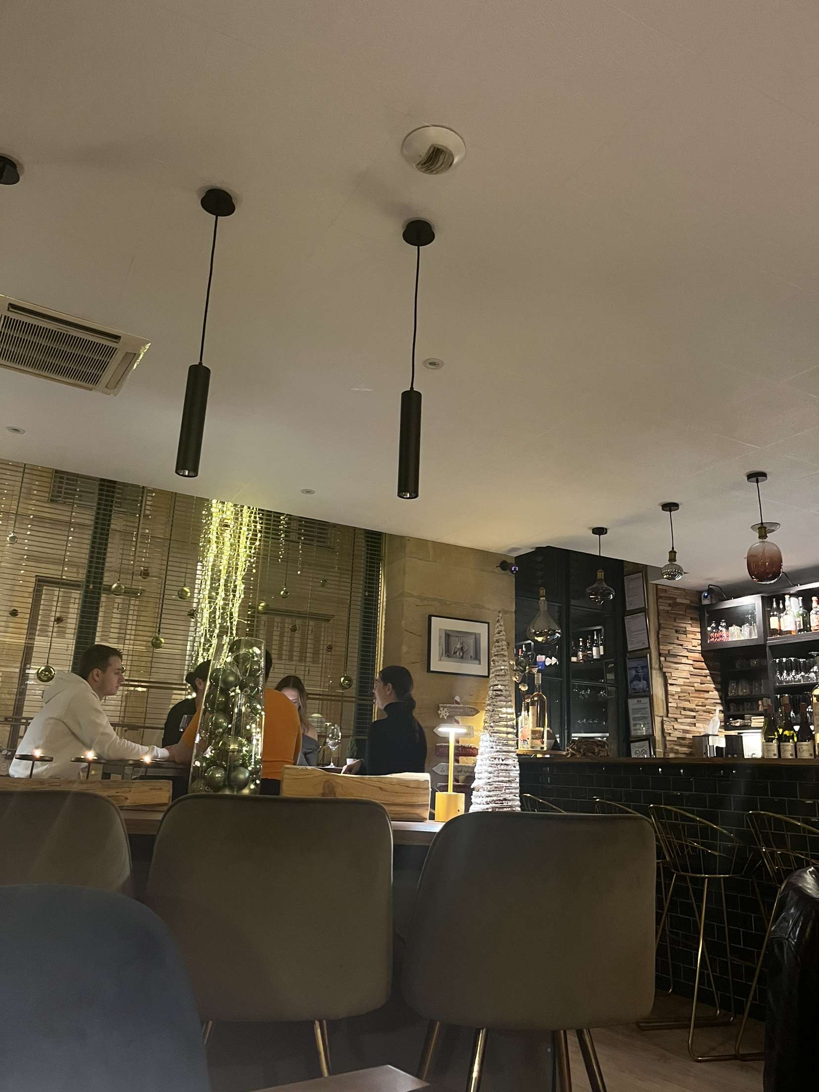 Nous sommes venues à 3 entre mère et filles et nous avons été ravies de notre venue. Nous avons extrêmement bien mangé, les plats étaient délicieux (salade de chèvres panés et risotto à la truffe), frais et savoureux. Le personnel est incroyable, drôle, souriant, hyper flexible (propose de réaliser des cocktails hors carte!) En plus d’avoir bien mangé, nous avons été plongé dans une ambiance chaleureuse, cosy… parfaite hiver comme été. Nous y reviendrons c’est sur ! Merci aux propriétaires et aux cuisiniers.