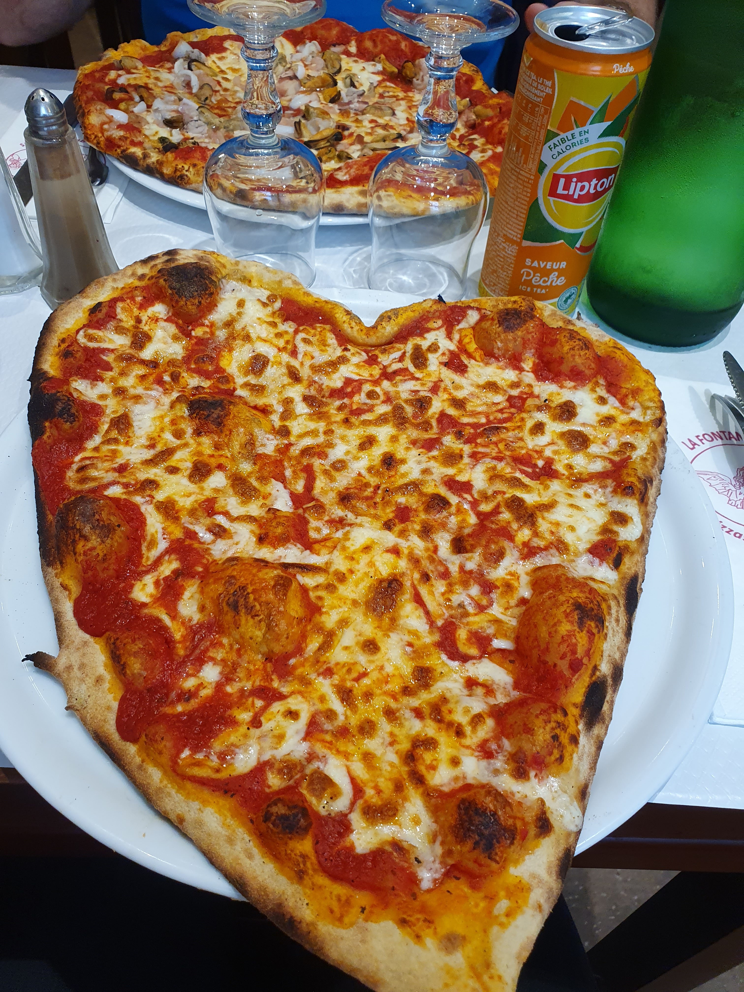 Je suis venu le jour de mon anniversaire le 27 juillet. J'ai vraiment adoré manger ici, la pizza campagnarde était très bonne et en plus de ça c'etait en forme de cœur. On nous a même offert un petit shot après manger. Le personnel était très gentil et le lieu est convivial. Vraiment je vous le conseille.