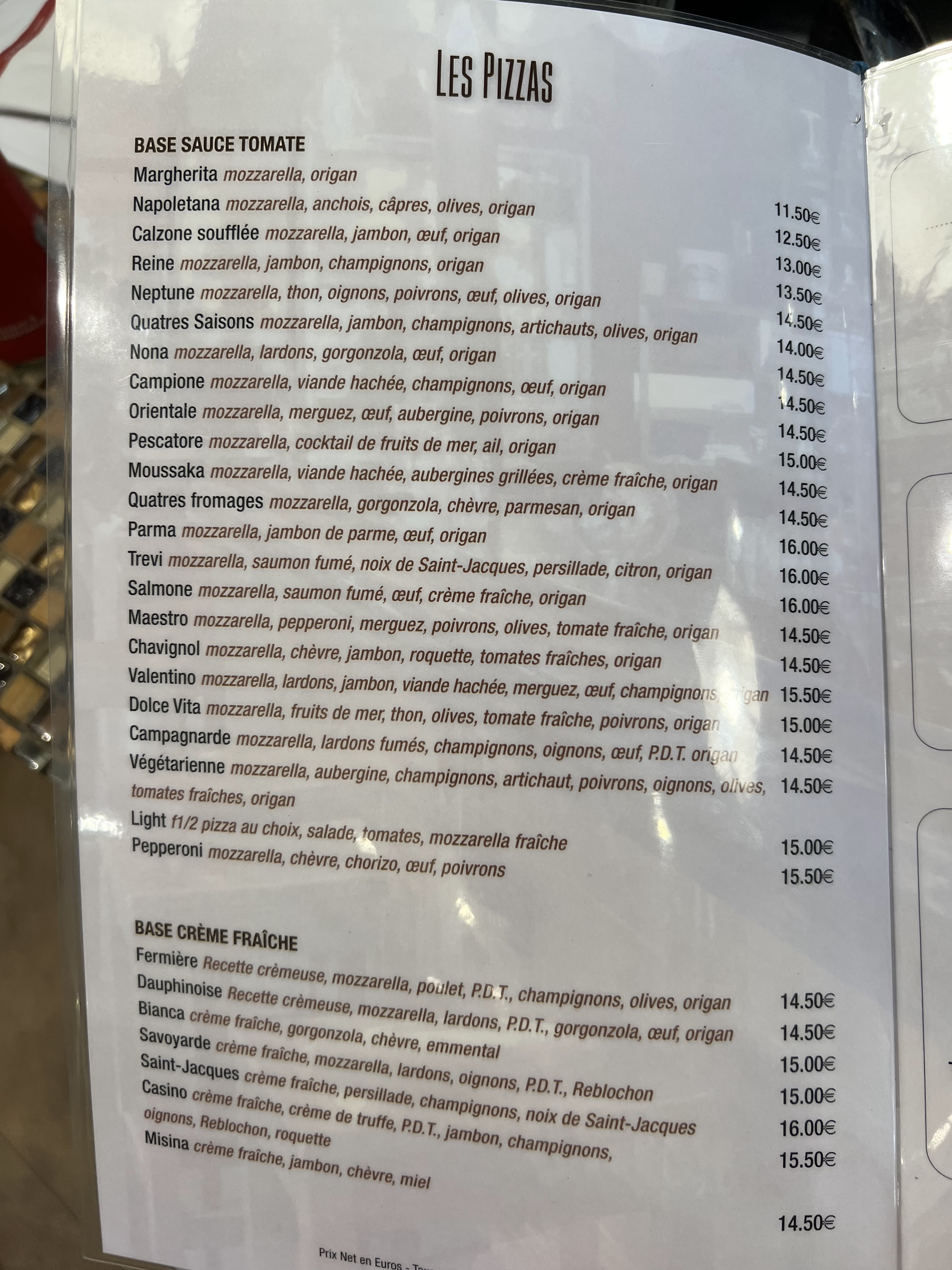 Bonne pizza, pâtes ok mais alors très déçue du tiramisu sans mascarpone mais à la chantilly, c'est fade et rien que pour ça je ne recommanderai pas.