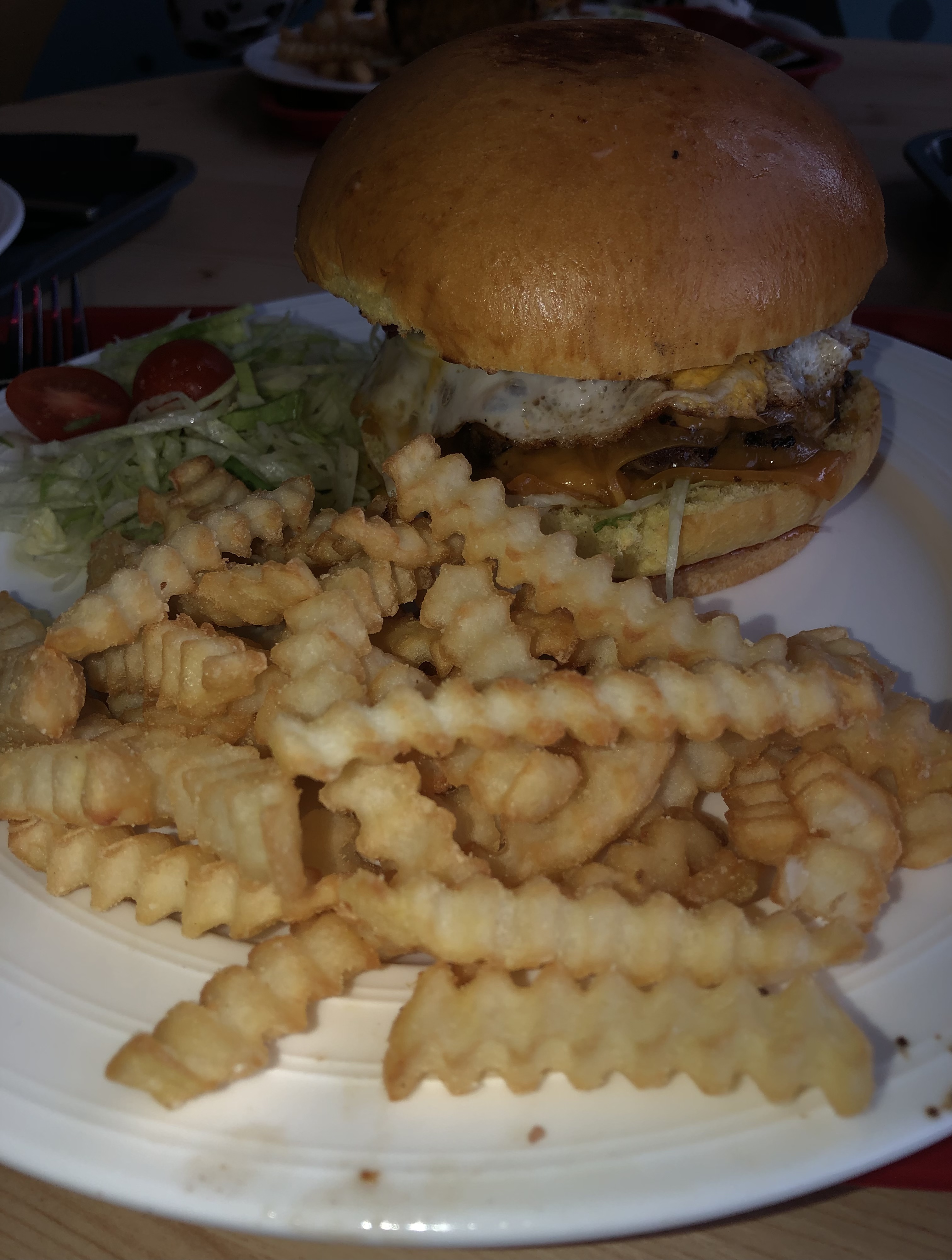 Je suis venu avec ma fille de 17ans à qui j'ai fait la surprise!! Elle a commandé thai et elle a surkiffé!! Moi j'ai pris double cheese le pain incroyable la viande aussi.... et les frites!!! Super croustillantes et d'une légereté!! En dessert les pâtisseries à tombé! Nous avons pris tarte pistache et tarte vanille! Un délice!! Je suis reparti avec cookies pistache et noisette, tarte pistache, citron, paris brest, noix pecan et raphaello! pour deguster en famille à la maison!! Vraiment le goût des pâtisserie c'est un autre monde je recommande à 1000%!!