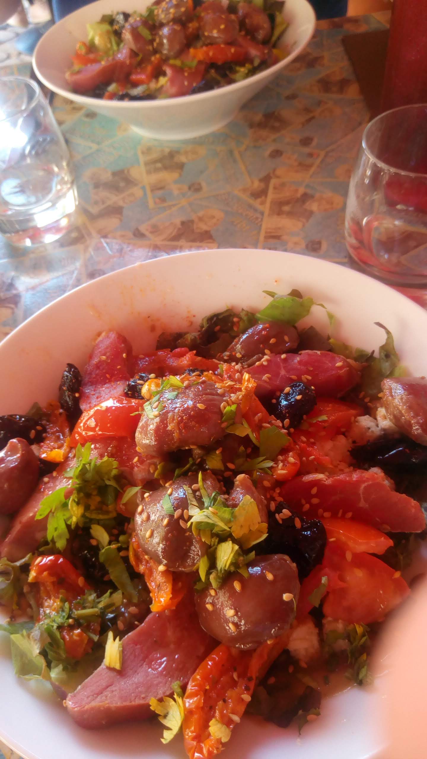 Grosse déception dans cet endroit repéré la veille. Je commande un verre de vin rouge, il arrive réfrigéré. Je le goûte même pour un syrah bio il est ultra tannique au point qu’il n’est franchement pas bon. On commande des tapas, le pain est complètement rassis. Le caviar d’artichaut n’en a pas le goût. Je demande une planche fromage plutôt que mixte on m’explique qu’on n’en fait pas (enfin mixte moins charcuterie c’est fromage non ?). Bref à éviter ou clairement ce soir il y avait plus que du relâchement.