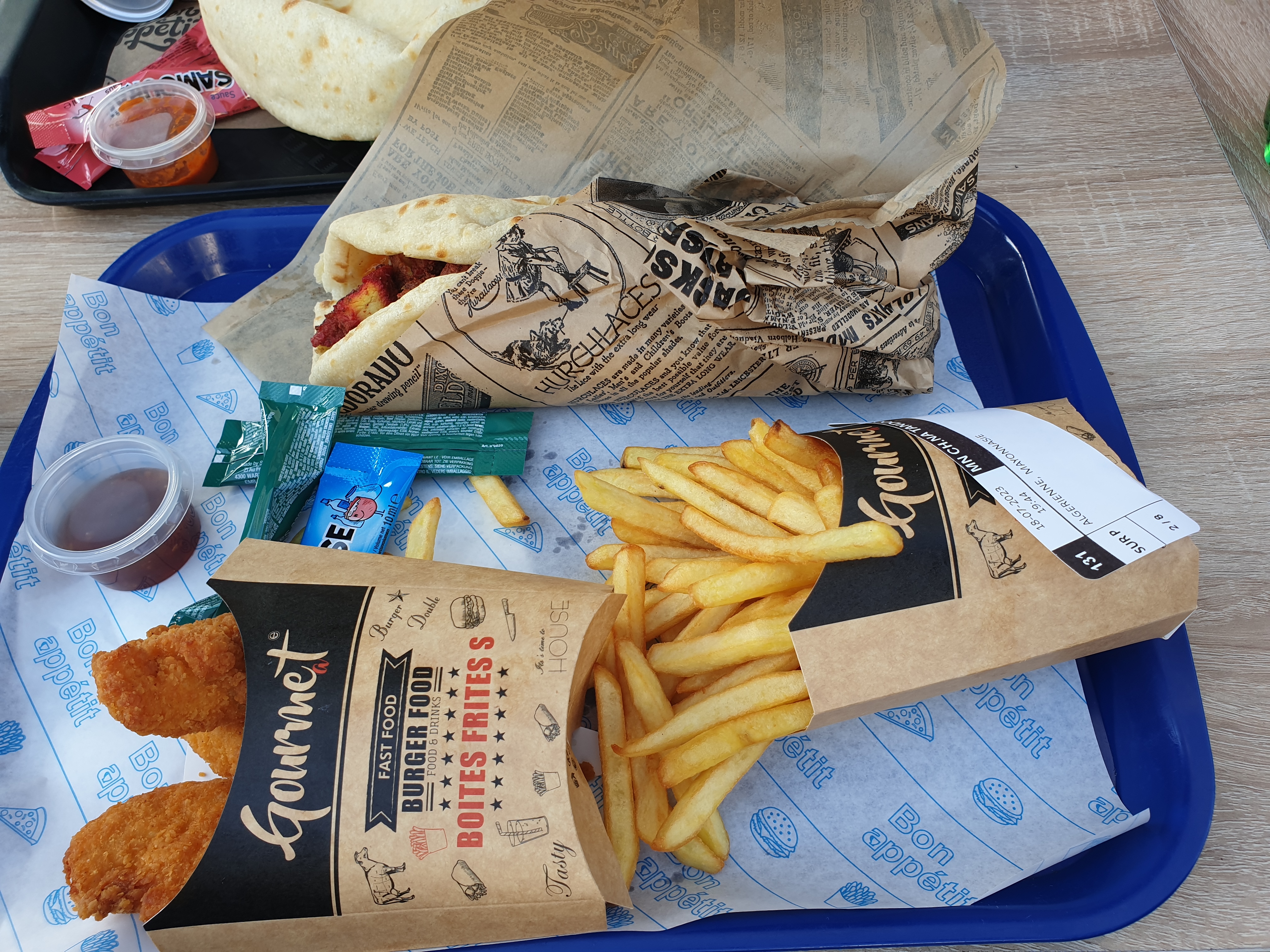Au top magnifique super bon, on en a pour son argent très bon rapport qualité-prixune multitude de choix en voyage à travers la carte on peut y retrouver des turc américain bistrot français et même indien très belle découverte culinaire on a pris 2 menus à 11.90 € boisson comprises