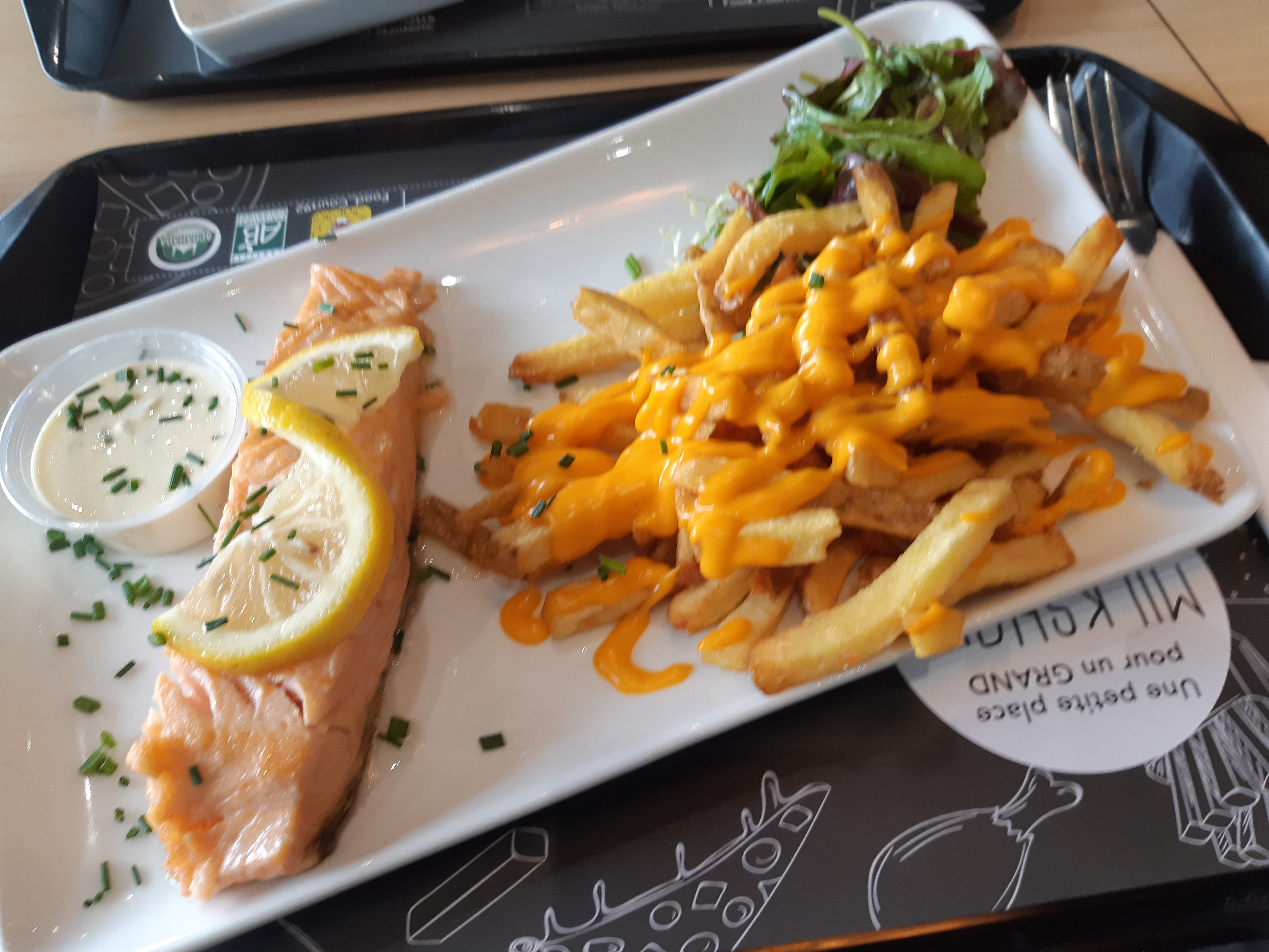 Restaurant de dernière minute je vous conseille d'attendre dans le fast food ou vous devez aller initialement est faire la queue, les portions de frites pour enfants mais pas dans le menus enfants une sauce par menu . Bref ça passe si vous n'avez pas très faim et que vous voulez gaspiller de l'argent.