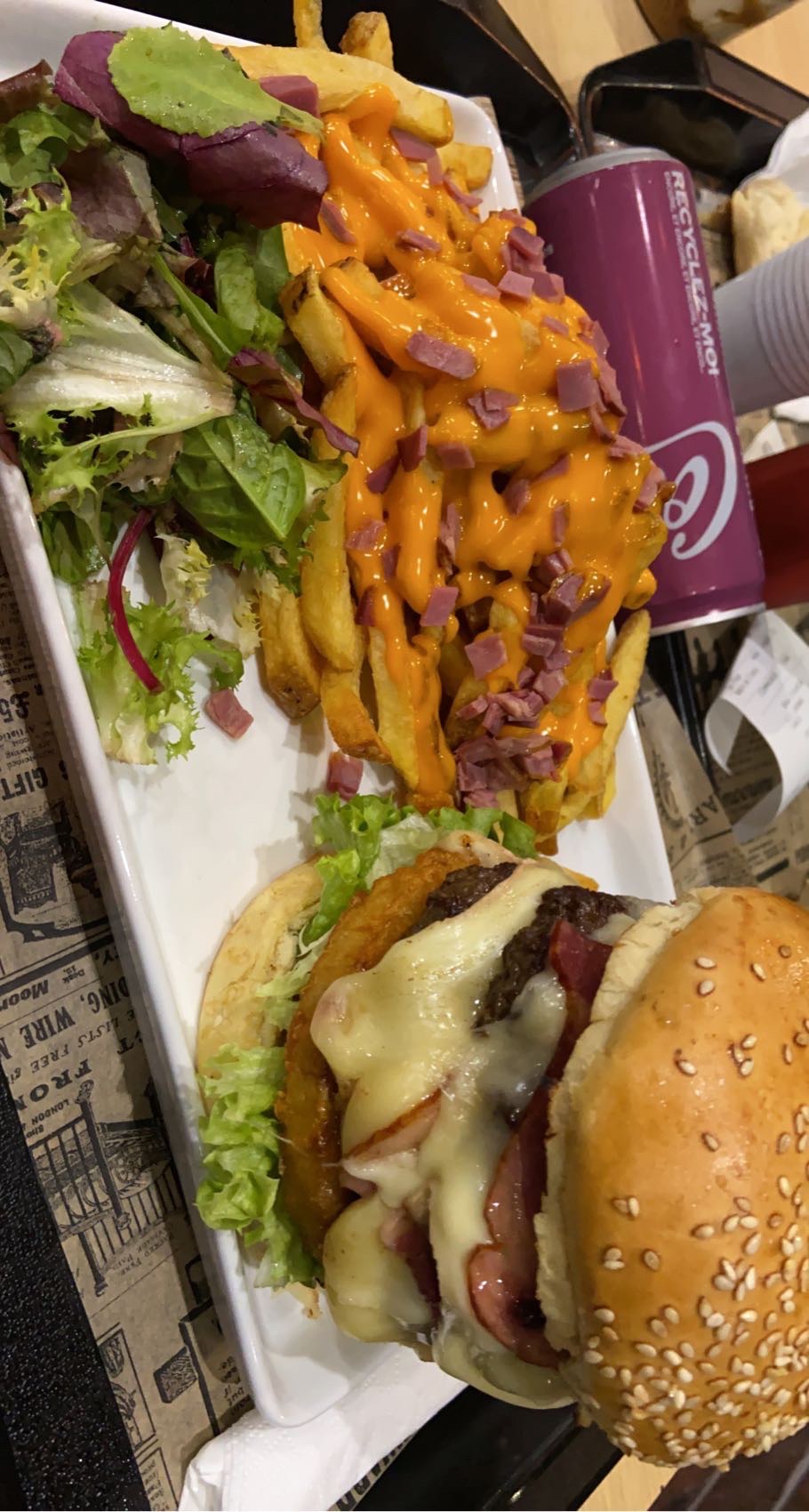 Fort dommage qu’on ne puisse pas prendre de supplément viande ou bien prendre des extra à côté type 5 tenders en plus. De plus, la quantité de frites servies a diminuée …