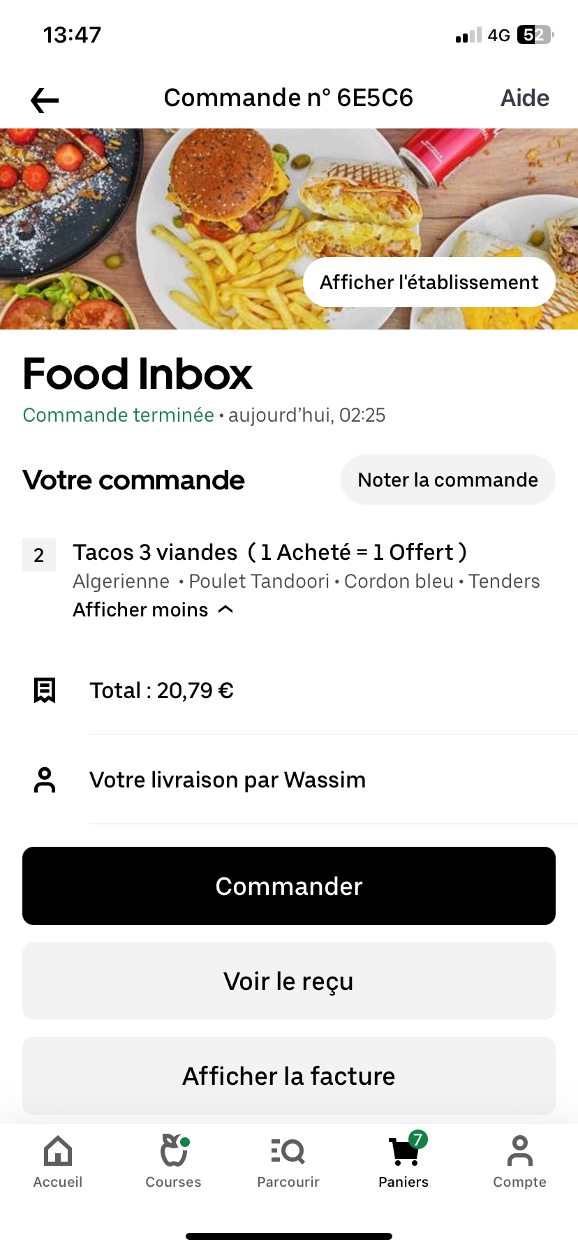 Pire tacos de ma vie, frites en supplément pas cuite toute blanche, supplément Cheddar posé sur le pain un véritable sketch, 33€ en livraison fuyez ! Tacos 3 viandes j ai pas vu le kefta dans mon sandwich, beaucoup de faux avis ne vous faites pas avoir.