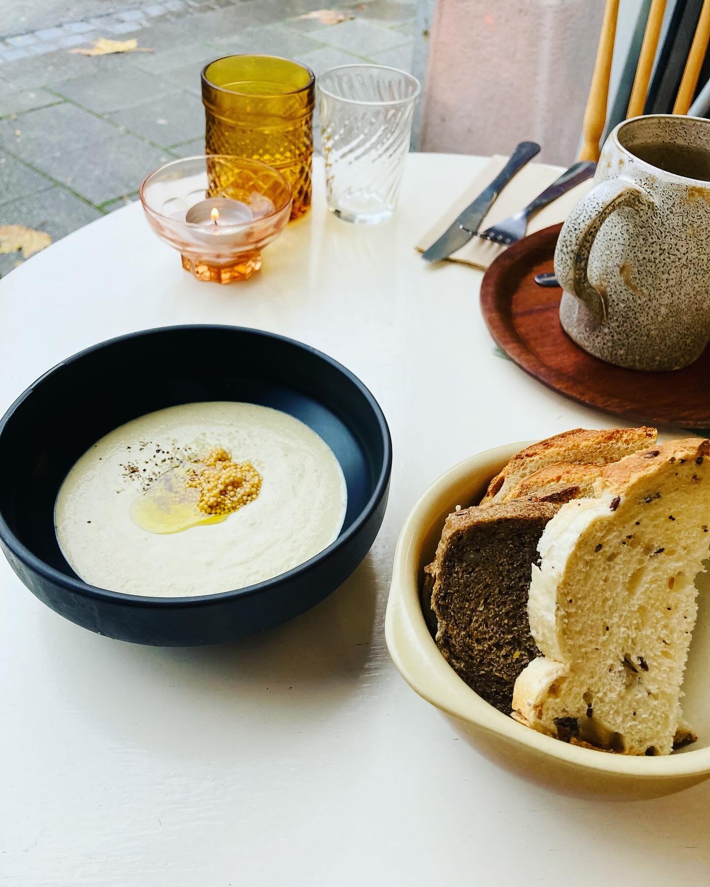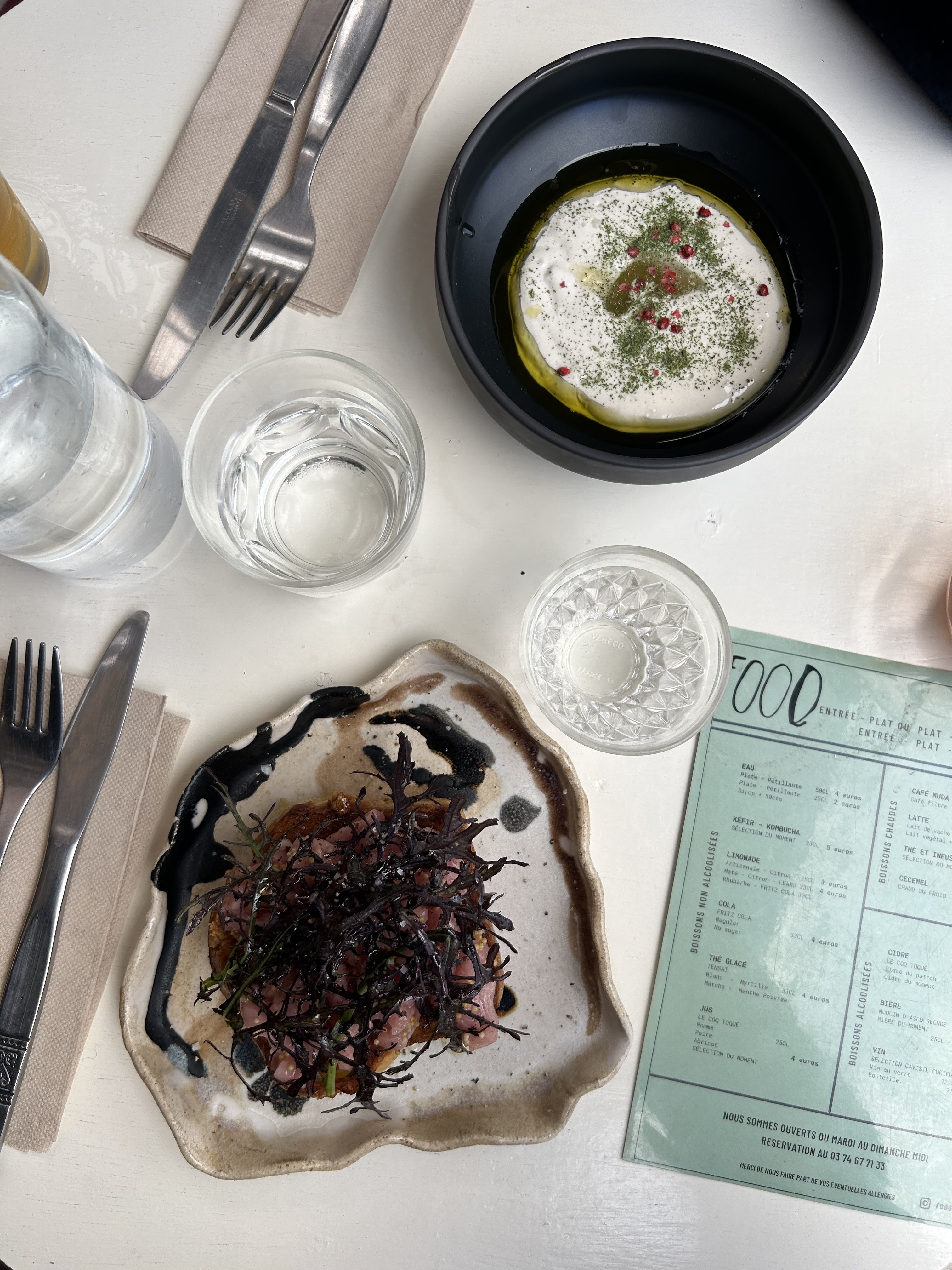 Un midi de novembre pluvieux et froid, je suis allée me réfugier chez Food et j’y ai trouvé plus que du réconfort, un déjeuner savoureux et une ambiance douce propice à l’évasion. Food est situé au sein du Vestiaire, à deux pas du musée La Piscine à Roubaix. Food est un véritable cocon chaleureux à souhait. Ce midi là j’ai eu la joie de goûter deux entrées un dip de lentilles relevé de pickles de moutarde avec du très bon pain et un filet mignon divinement accompagné d’un caramel de miso. Pour le plat après une longue hésitation mon choix s’est porté sur une fregola sarde, céleri, tartufata et ricotta salata savoureuse. Je me suis laissée tentée par un banana bread façon pain perdu pour le dessert accompagné d’un délicieux café filtre. Du côté des boissons, j’avais envie d’un bon thé pour me réchauffer mais la carte comporte un joli choix de vins et de bières du coin. Le plus difficile fut de résister à faire un tour au grand bassin avant mon rdv de l’après-midi. J’ai adoré ce moment suspendu chez Food et je ne peux que vous conseiller de tester cette belle adresse à Roubaix !
