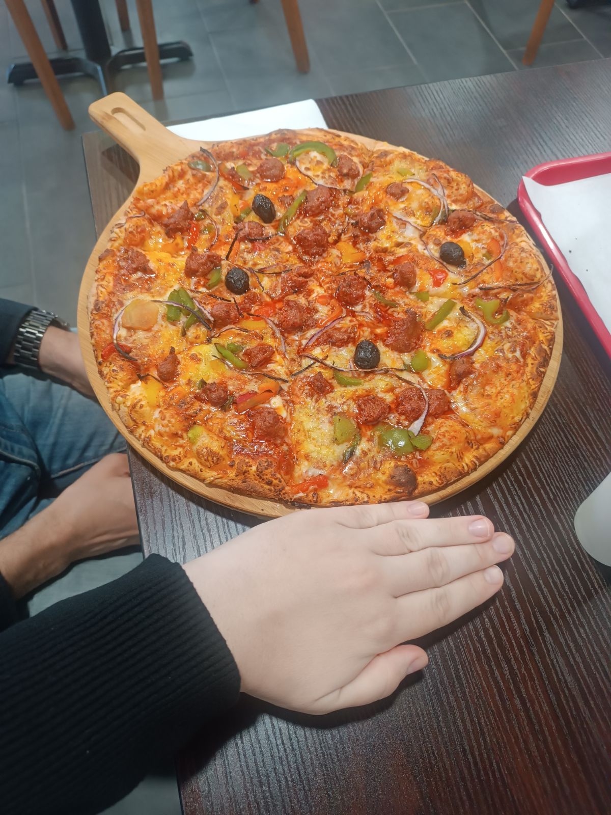 Bon accueil et service assez rapide pour un samedi soir , la pizza royale et le tacos sont super bon Vous pouvez y aller ça passe très bien moi j'y retournerai sûrement merci