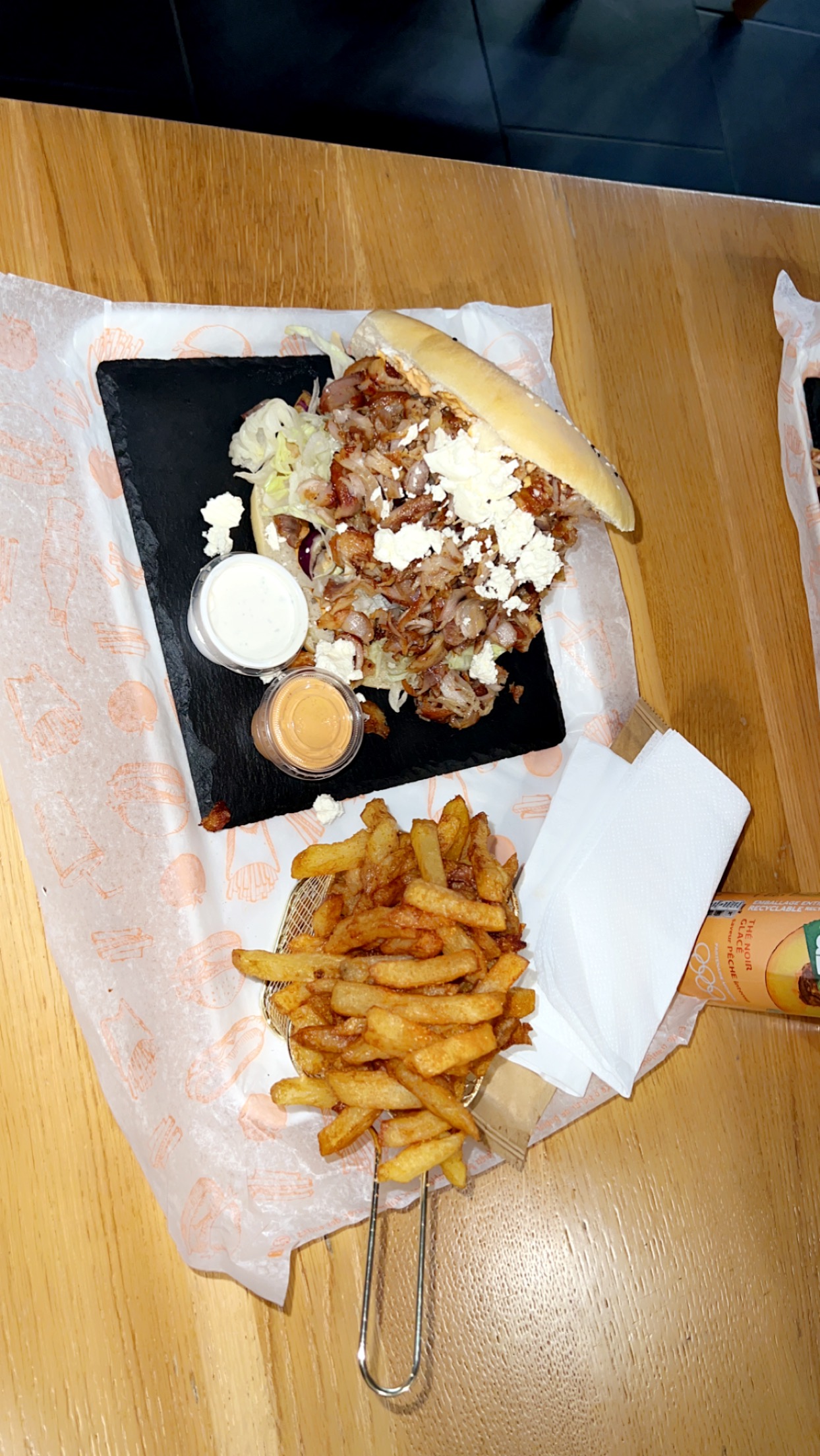 Pour ceux qui veulent changer du kebab classic, la viande est bonne et pas grasse, le pain est top et les frites maison très bonne, encore plus accompagné de la sauce blanche ou rouge maison Je vous le recommande sans soucis