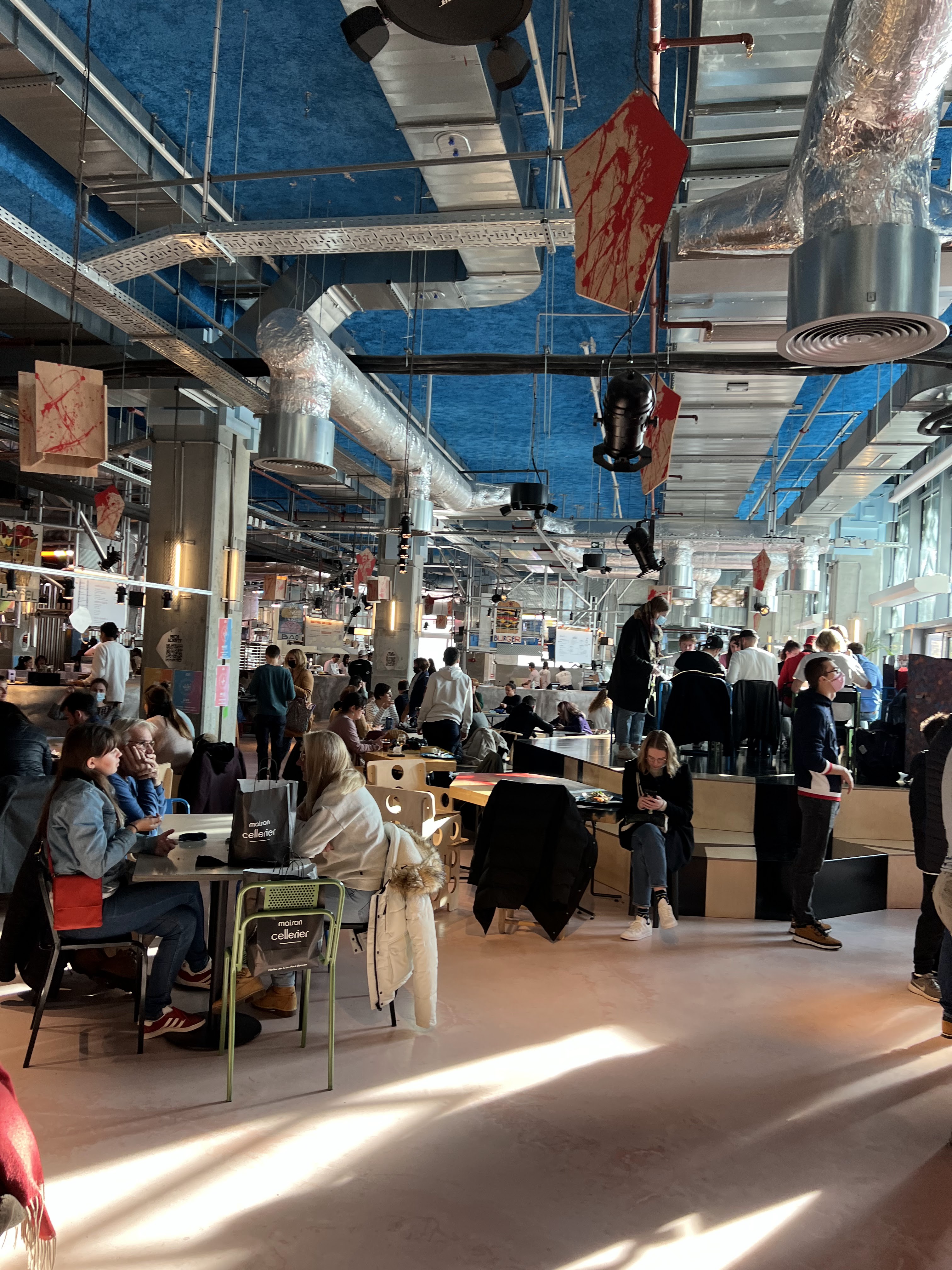 La plupart des stands sont fermés, ce qui diminue le choix drastiquement. Les tables ne sont pas nettoyées vous mangez sur les miettes des autres. Nous spécialement, on a mangé thaï et c'était absolument pas bon. La musique hurle, aucun intérêt. Les toilettes un filet d'eau s'écoule du lavabo donc on oublie le passage du lavage de mains après les besoins, et puis ça tombait bien puisqu'il n'y avait pas de savon non plus. Ce qui devait être un concept sympa à la base est un flop total