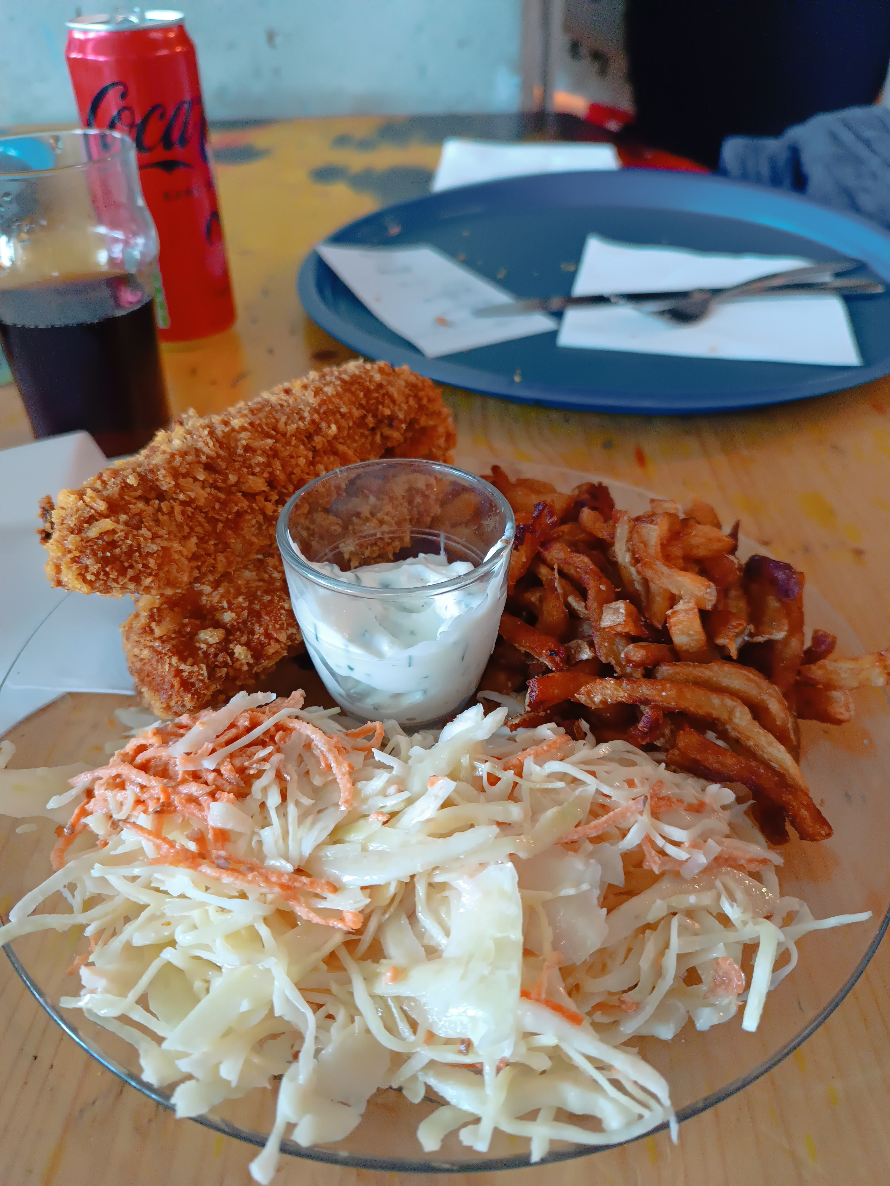 Quel massacre, pire que la cantine, Je devais manger chaud Servi tout Froid. Tout les ingrédients mélangés le poulet les frites et la salade...... Pas de goût, pas de saveur.... L'espace très bruyant. Trop cher payer. Je vous laisse juger de vous-même le visuel.