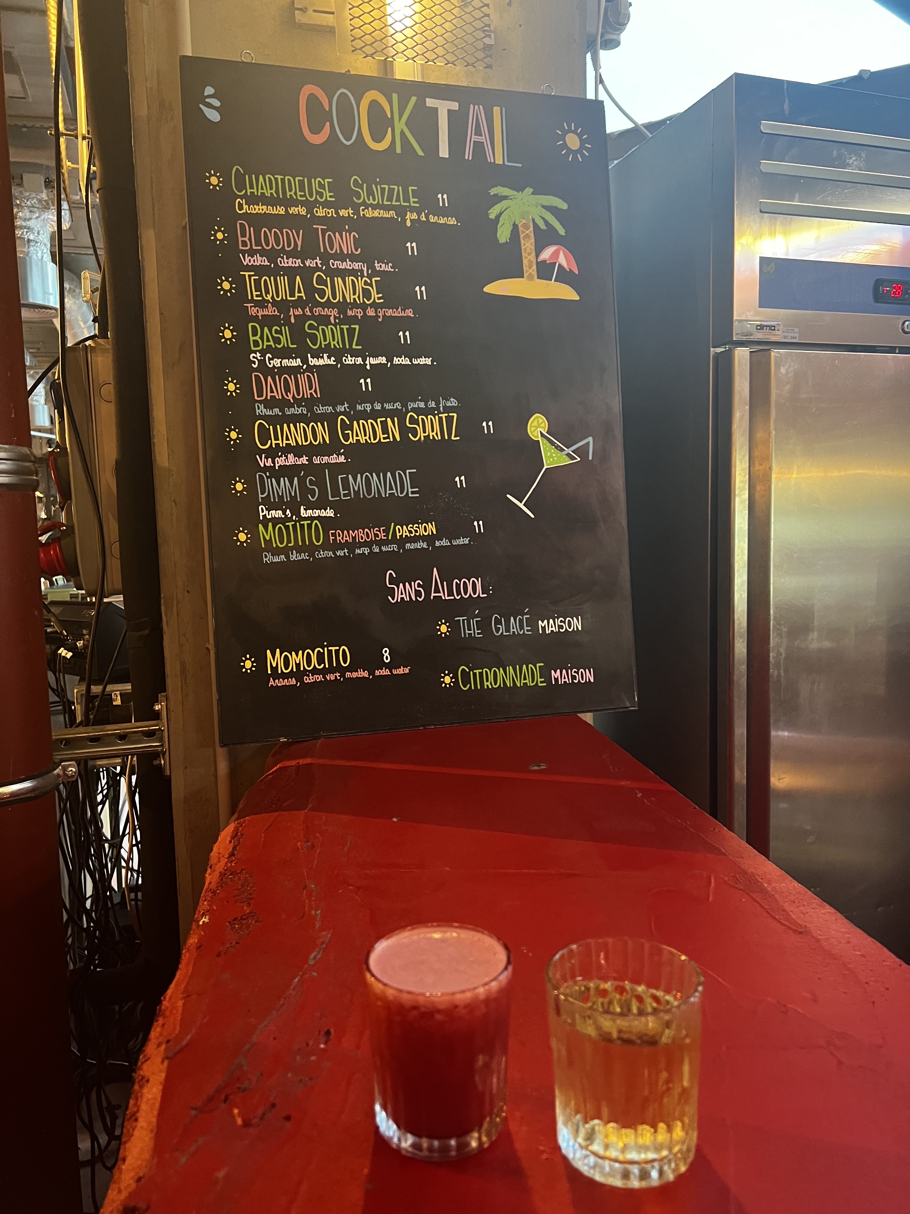 Je vous présente le cocktail « daquiri » à 11€ le verre! A ce prix un effort de présentation serait sympa. Et à côté le verre de vin! Hormis le bar, les pizzas et le libanais sont top, je vous les recommande