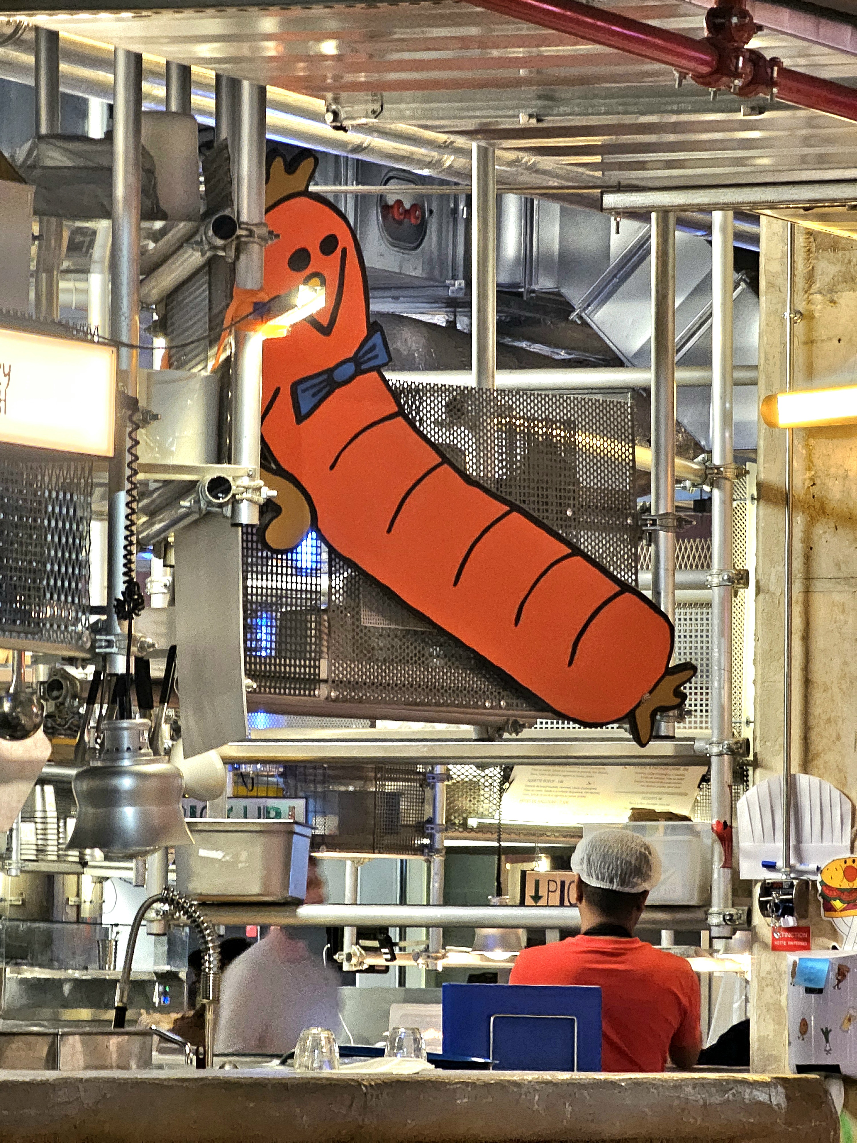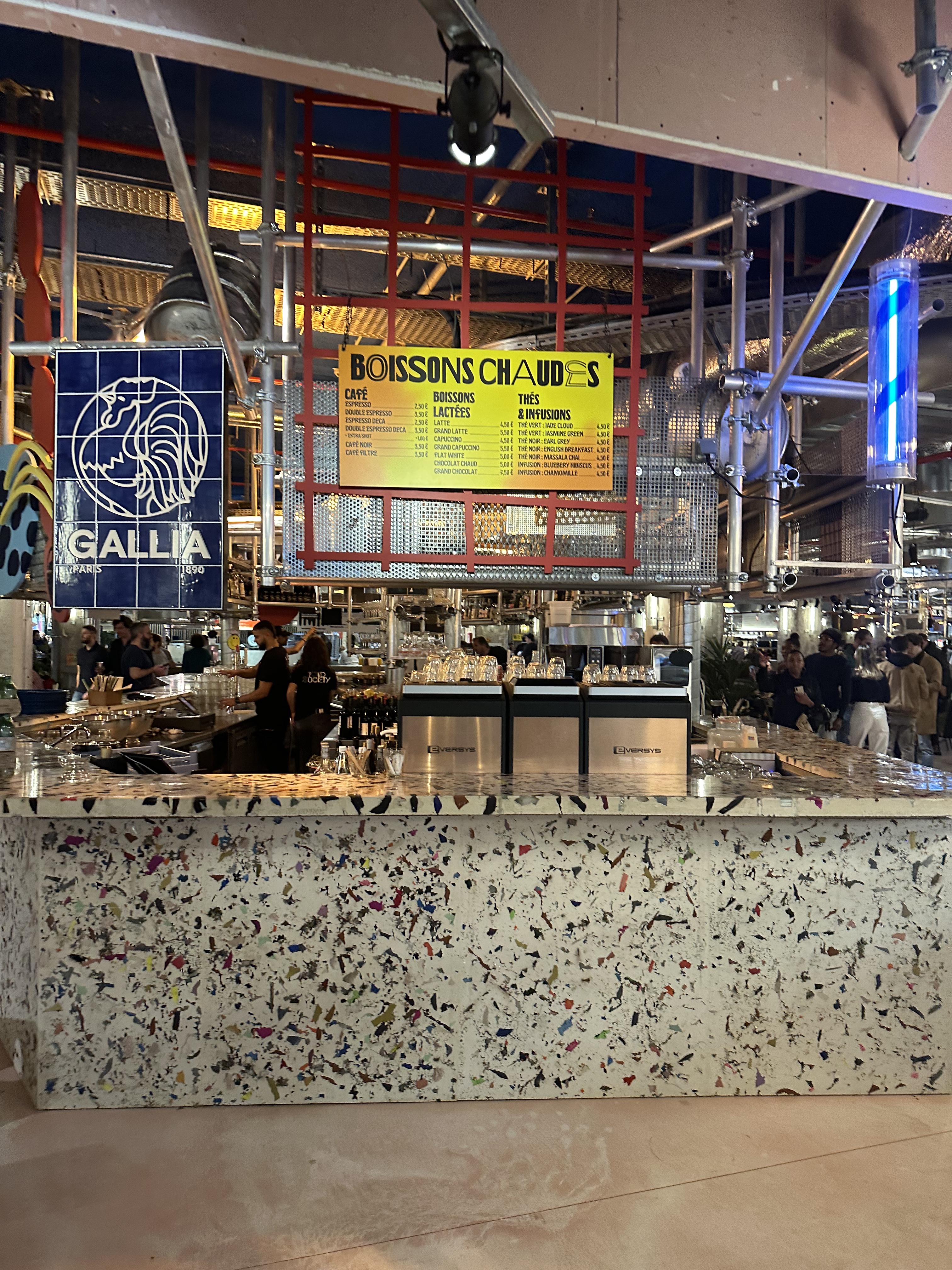Un nouveau système original de stand Grand choix de plats Trop complexes à mon avis avec un décor à la Beaubourg tres moderne , trop moderne 🙃 Dommage l’idée est bonne et originale 👍🏻 Doit se renouveler et se simplifier