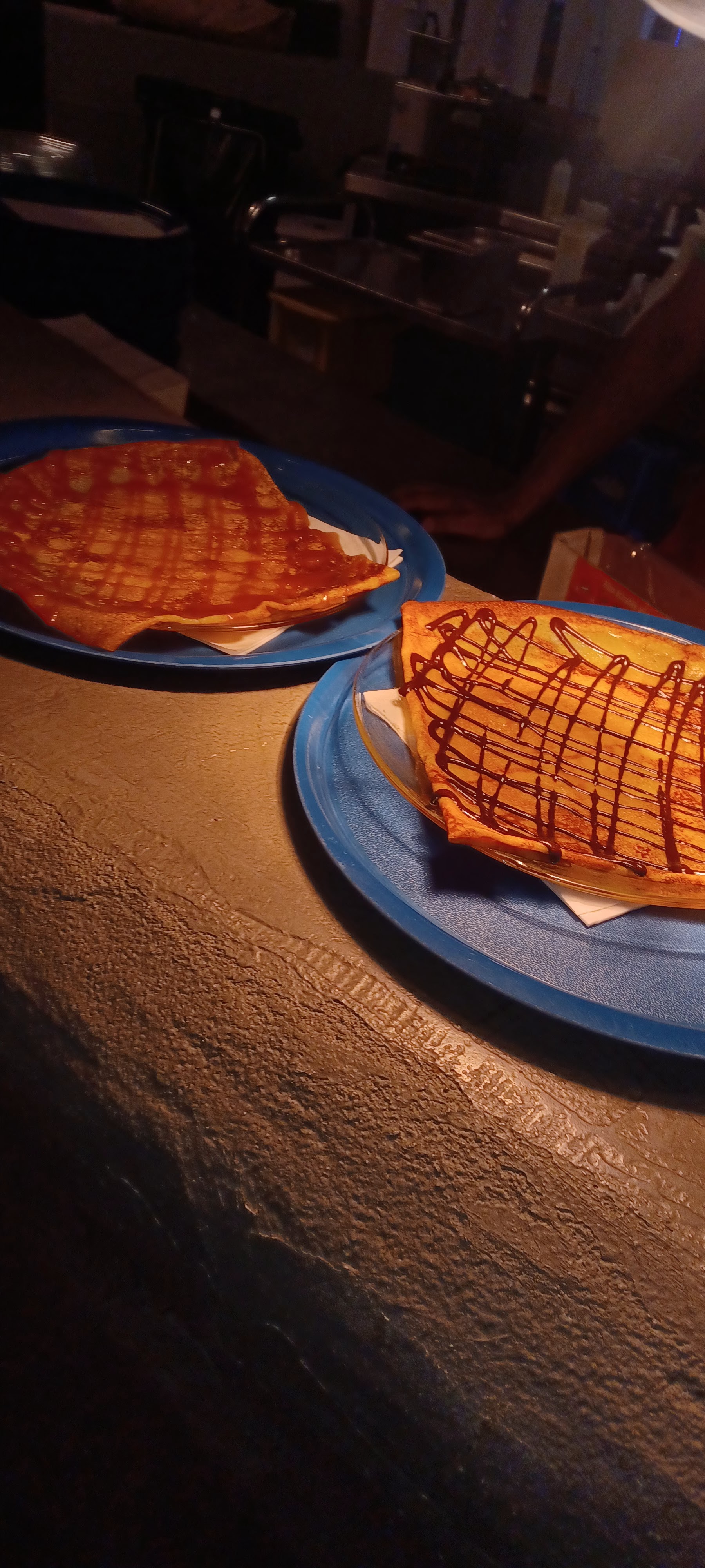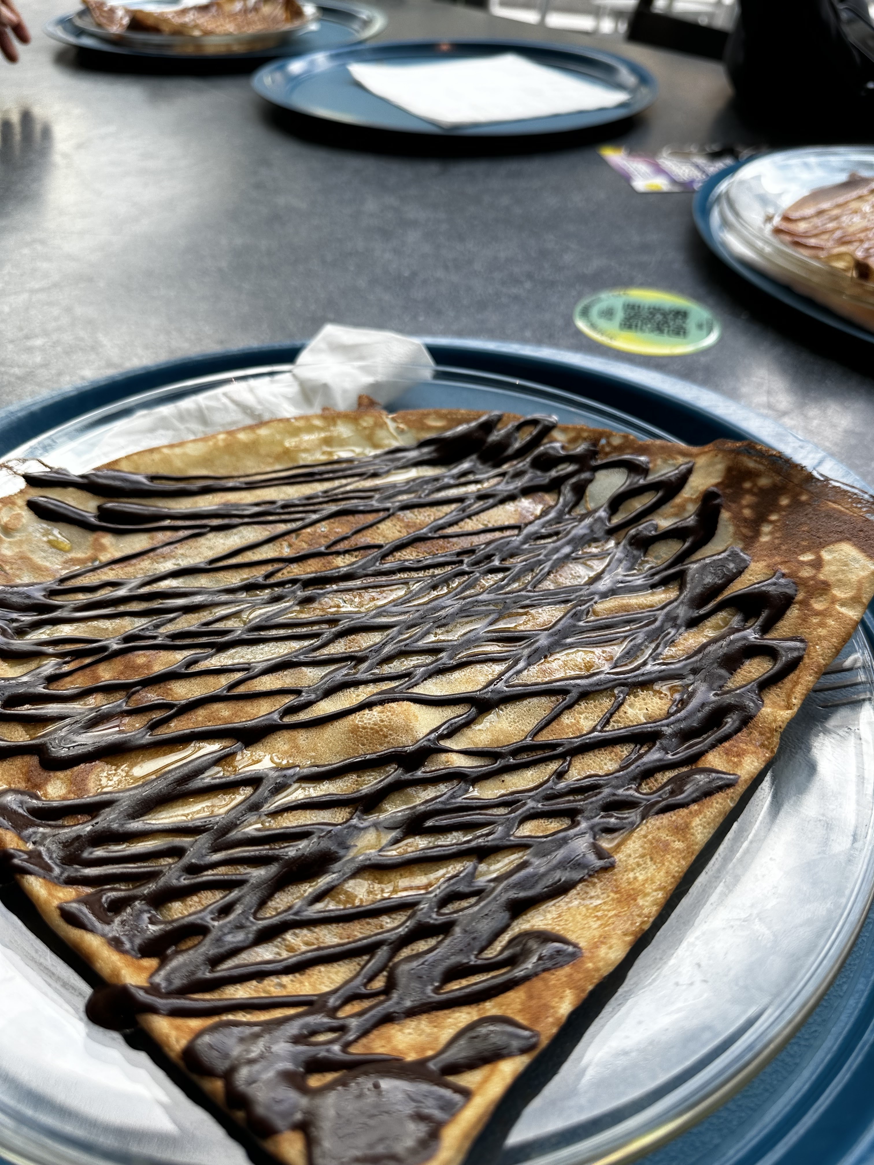 J'attends devant le cuisinier, mon menu Burger à 14€(frite+sandwich) Mes Burgers maison sont meilleurs et leurs frites congelés sont rassis . Il pose mon plateau sur le comptoir d'en face et ne dit rien. Puis attaque son ménage🤔 Pareil pour les crêpes même si elles sont bonnes (5,50€). Je veux bien que le concept soit la balade dans les différents stand mais bon !