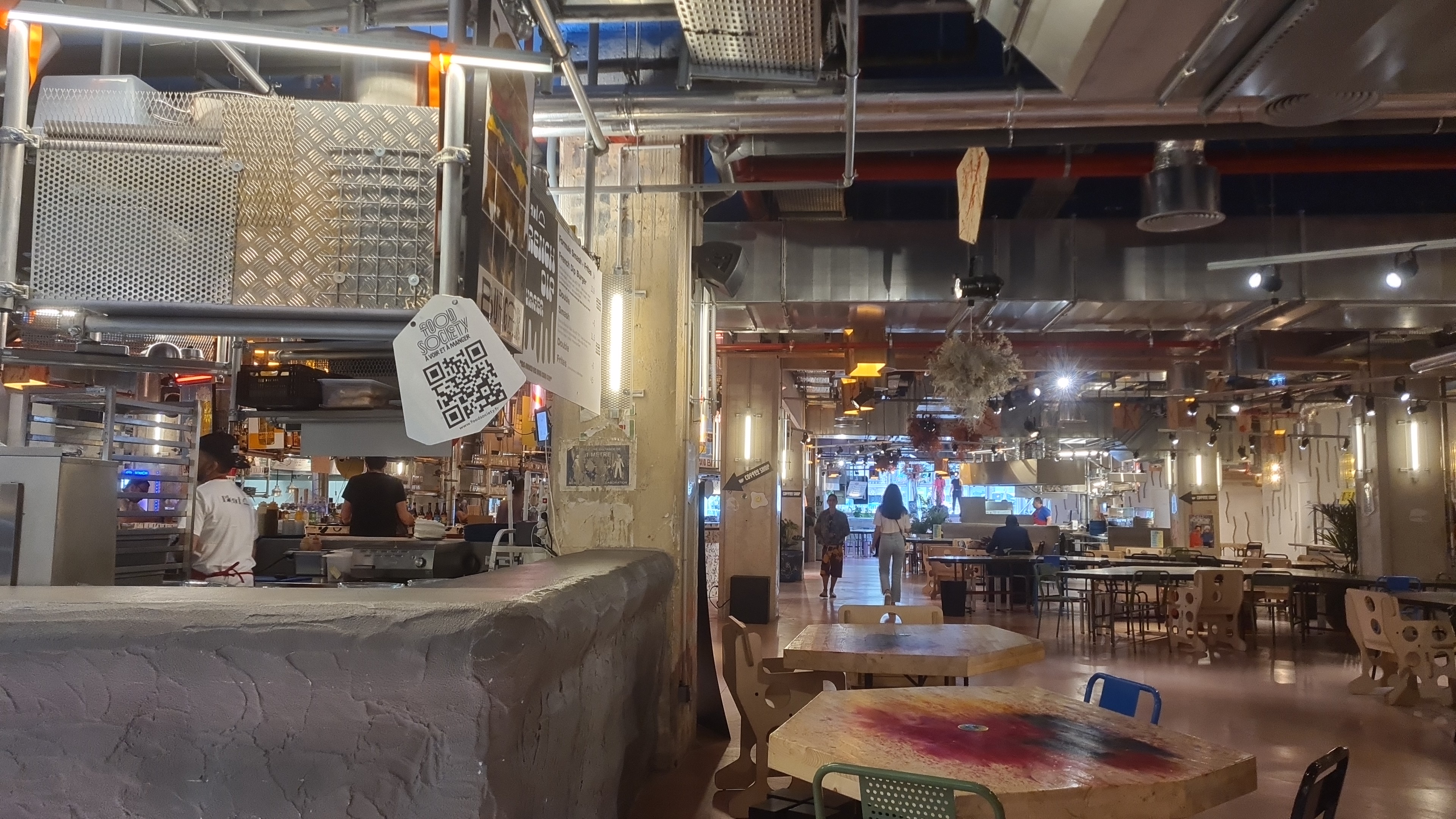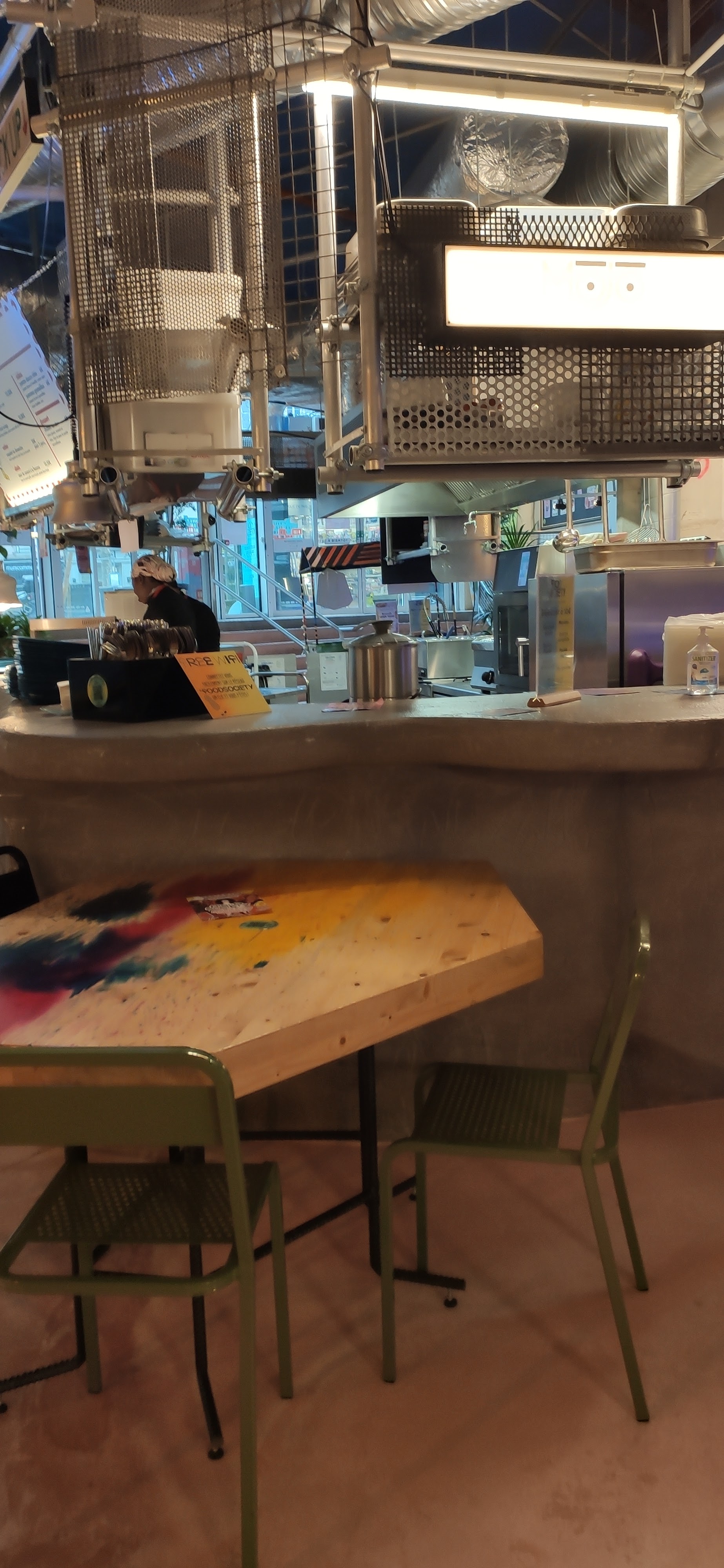 Nous avons été dans ce grand food court peu après son ouverture. Les débuts ont peut être manqués d'organisation. On avait galéré pour payer il fallait passer par la caisse centrale enfin on n'a pas vraiment été informé, finalement je crois que nous avons payé via l'appli. Sinon côté ambiance 3 étoiles car même si le lieu reste fidèle dans son côté industriel, la déco reste assez sobre et pas assez cosy. Côté nourriture il y a beaucoup de choix et c'est assez bon.