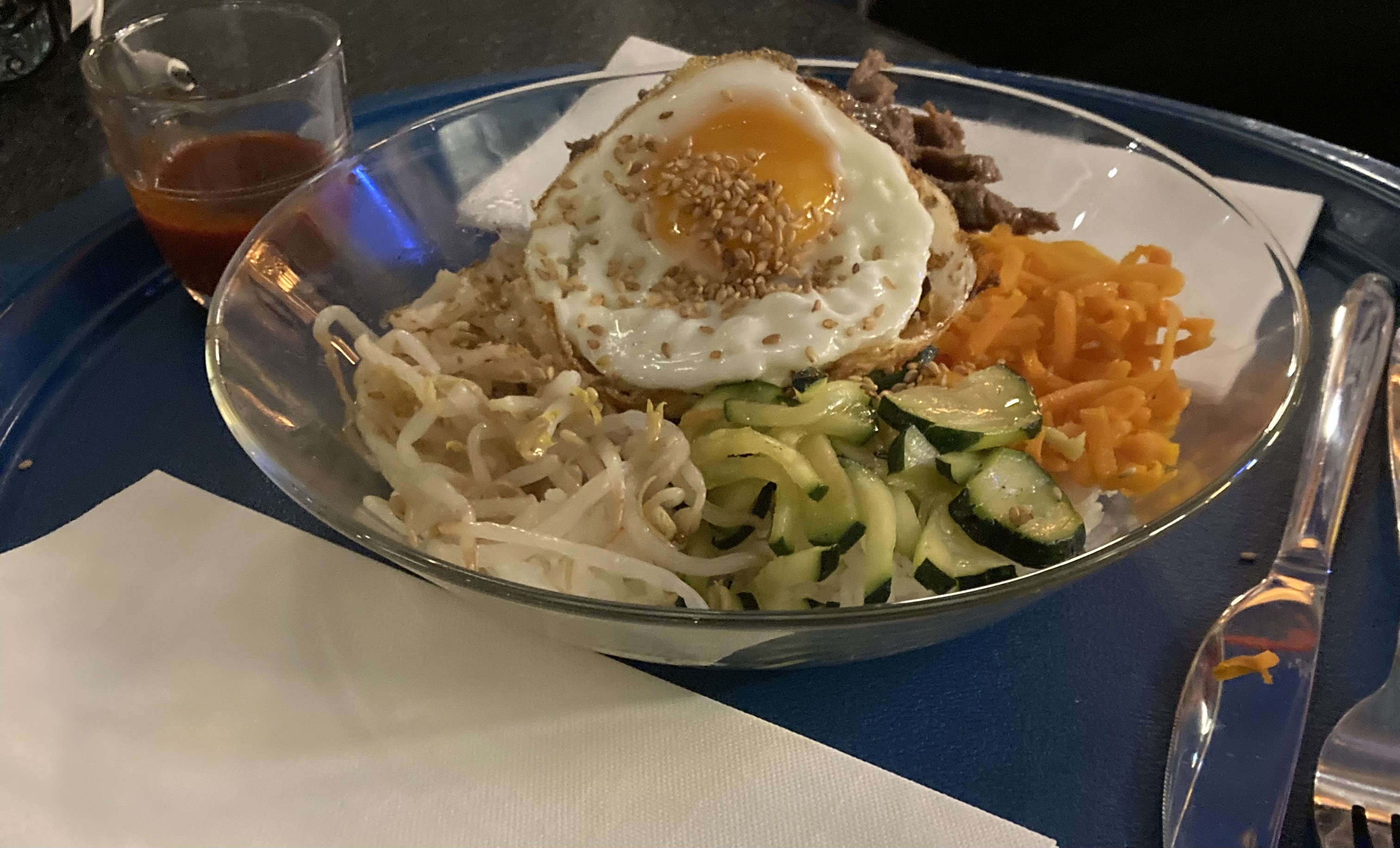 Choix large de plats d'origines différentes servis par 13 comptoirs au milieu de nombreuses tables. Le plat coréen Bibimbap est un des plus vendus. Ambiance relativement jeune avec musique d'ambiance (pas trop forte). Self-service après commande relativement laborieuse chacun sur son smartphone (ou à la caisse). Décor du genre industriel. Prix légèrement cher pour l'endroit.