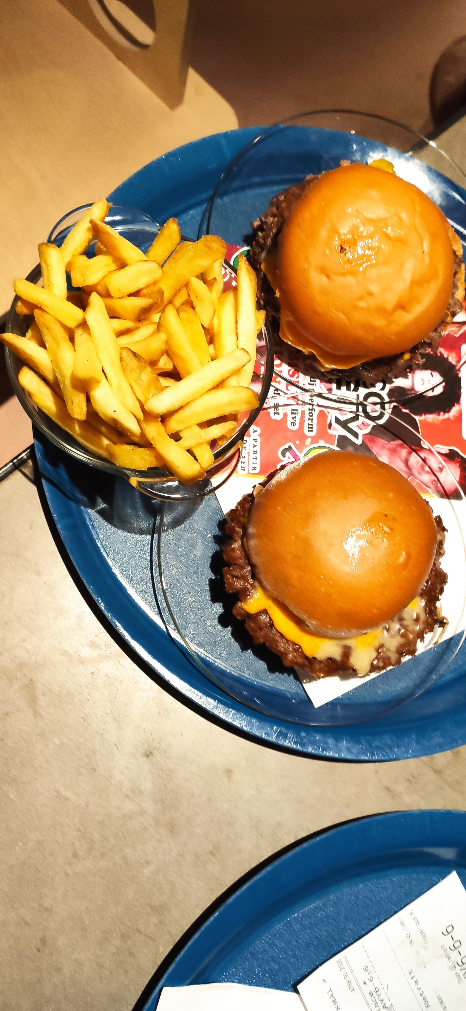 Burgers blend ridiculement petits, même pour mon fils de 8 ans ce n'était pas suffisant pour être rassasié... et pas très bon avec une garniture a minima: salade iceberg et sauce avec le mini steak. C'est limite du vol vs le visuel présenté sur l'appli pour commander. Déco minimaliste, manque d'éclairage, assez bruyant. Ça ne donne pas envie de s'attarder. Service moyen : l'app indique que c'est en préparation alors que c'est prêt et en train de refroidir sur le comptoir...