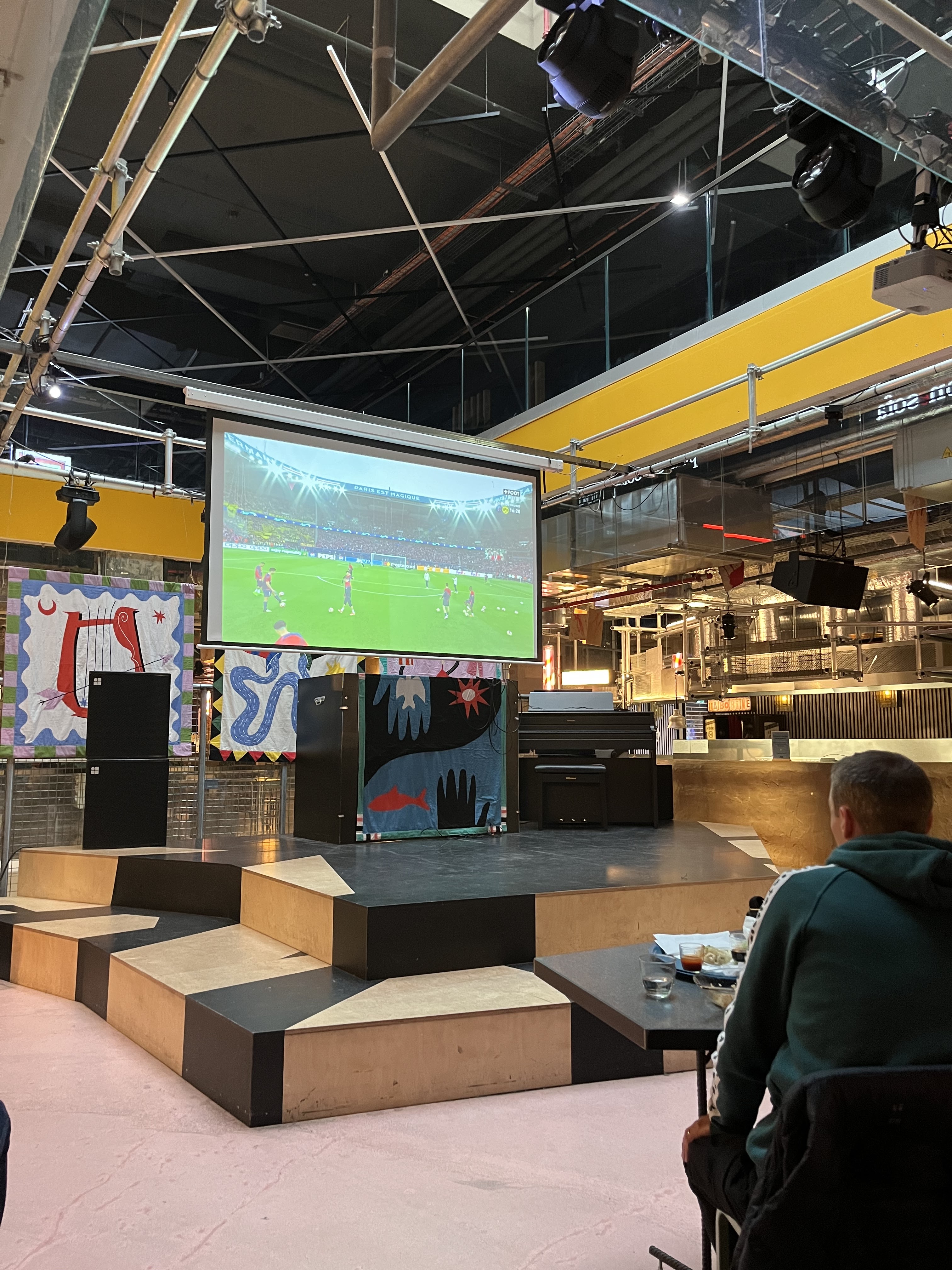 Soirée ligue des champions. C’est parfait pour regarder des matchs de football et déguster une variété de plats et de boissons. J'ai commandé un hamburger et un hot-dog chez «burger Society». Ce n'était pas mal mais ça peut être mieux. Les prix sont très raisonnables. Je le recommande pour regarder des matchs de football mais pas pour avoir une cuisine exceptionnelle.