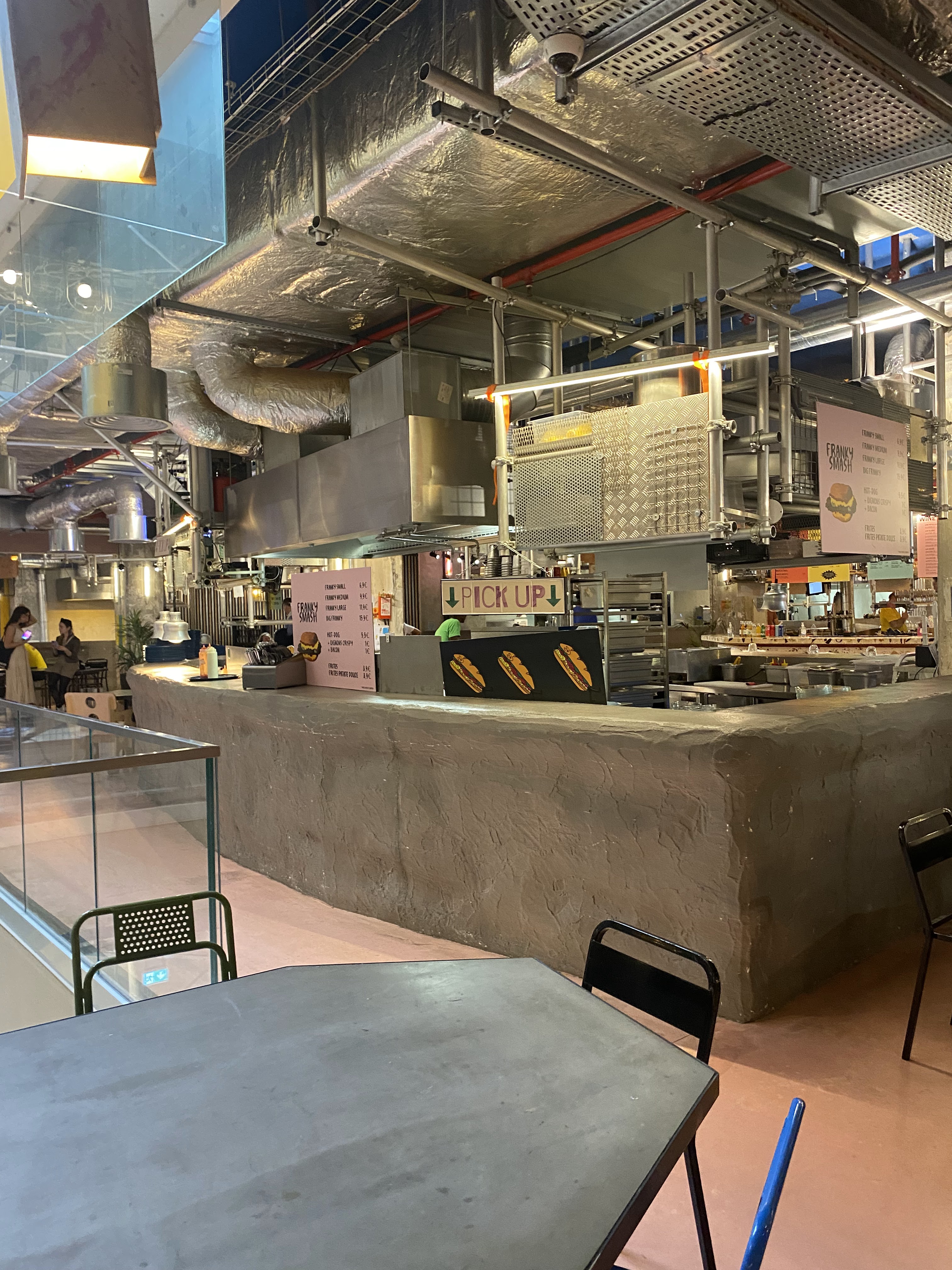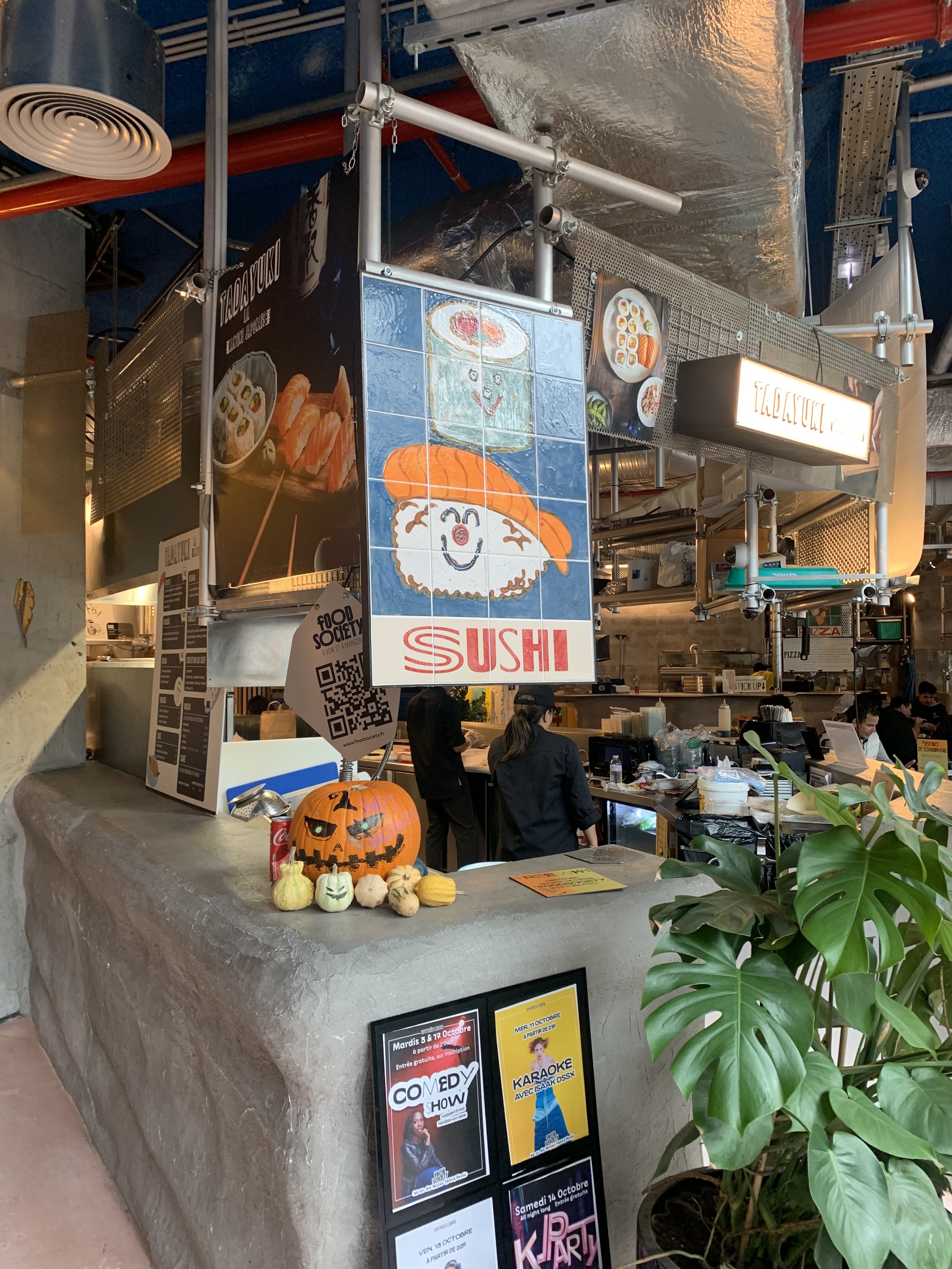 Nouveau food court parisien tant annoncé… est désormais ouvert ! Grosse déception pour ma part ! Le concept semble attractif… mais le rapport qualité/prix n’est pas au rendez-vous. Certains stands sont partiellement ou totalement fermés, de nombreuses ruptures sur tous les stands, dommage ! La salle en sous-sol est enfumée, bruyante et sombre. Beaucoup de grandes tables :) et peu de petites tables :(