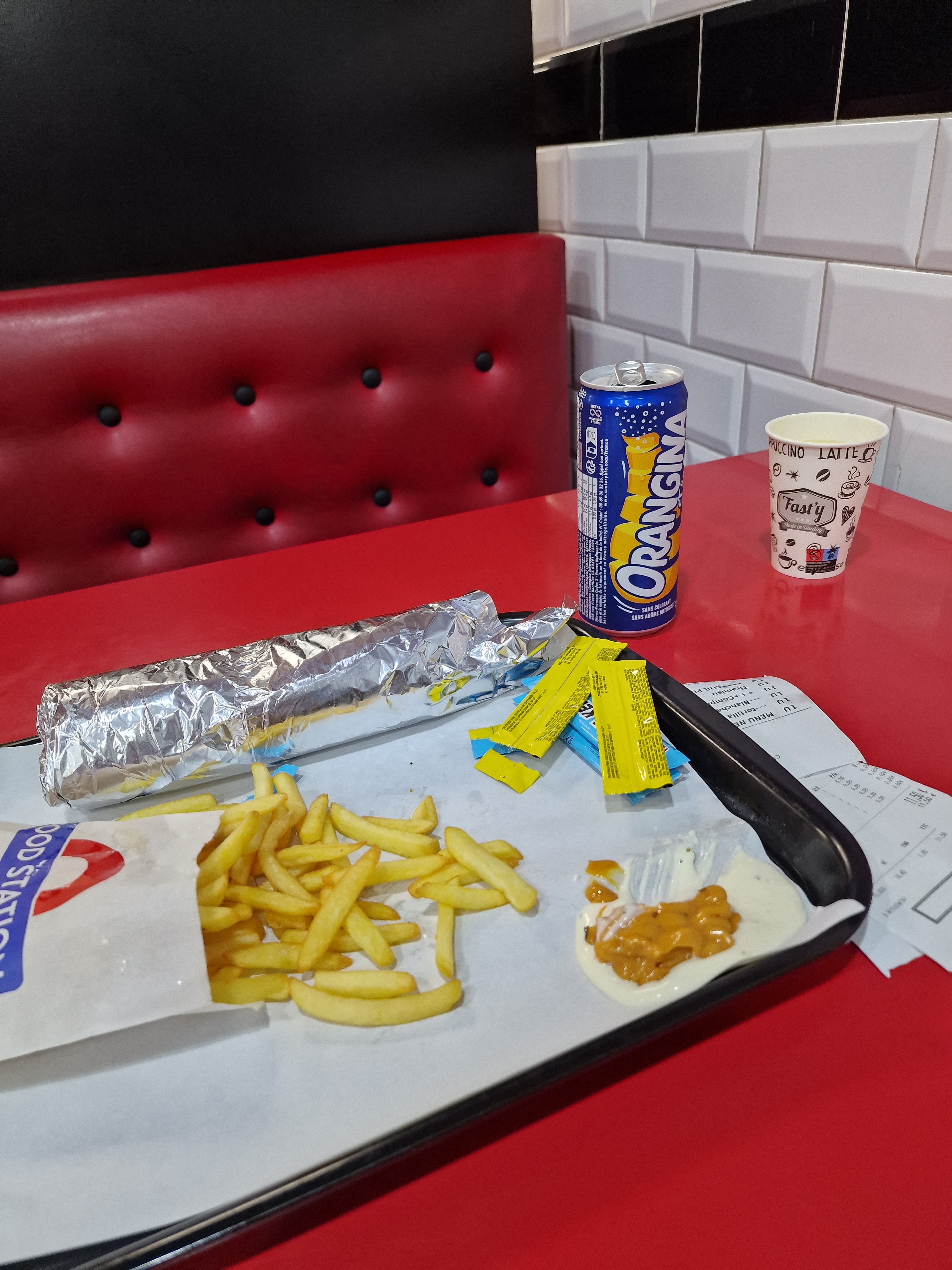 Tacos commander sur place avec un gout extrêmement acide a l’intérieur j’ai failli vomir plusieurs fois, impossible a finir je commanderai plus jamais la bas.(je ne suis pas le seul a m’en plaindre après avoir constaté la tonne d’avis d’indigestion suite a avoir consommé dans ce food station) je sais pas ce qui se passe en cuisine mais fuyez vraiment pour votre bien !!