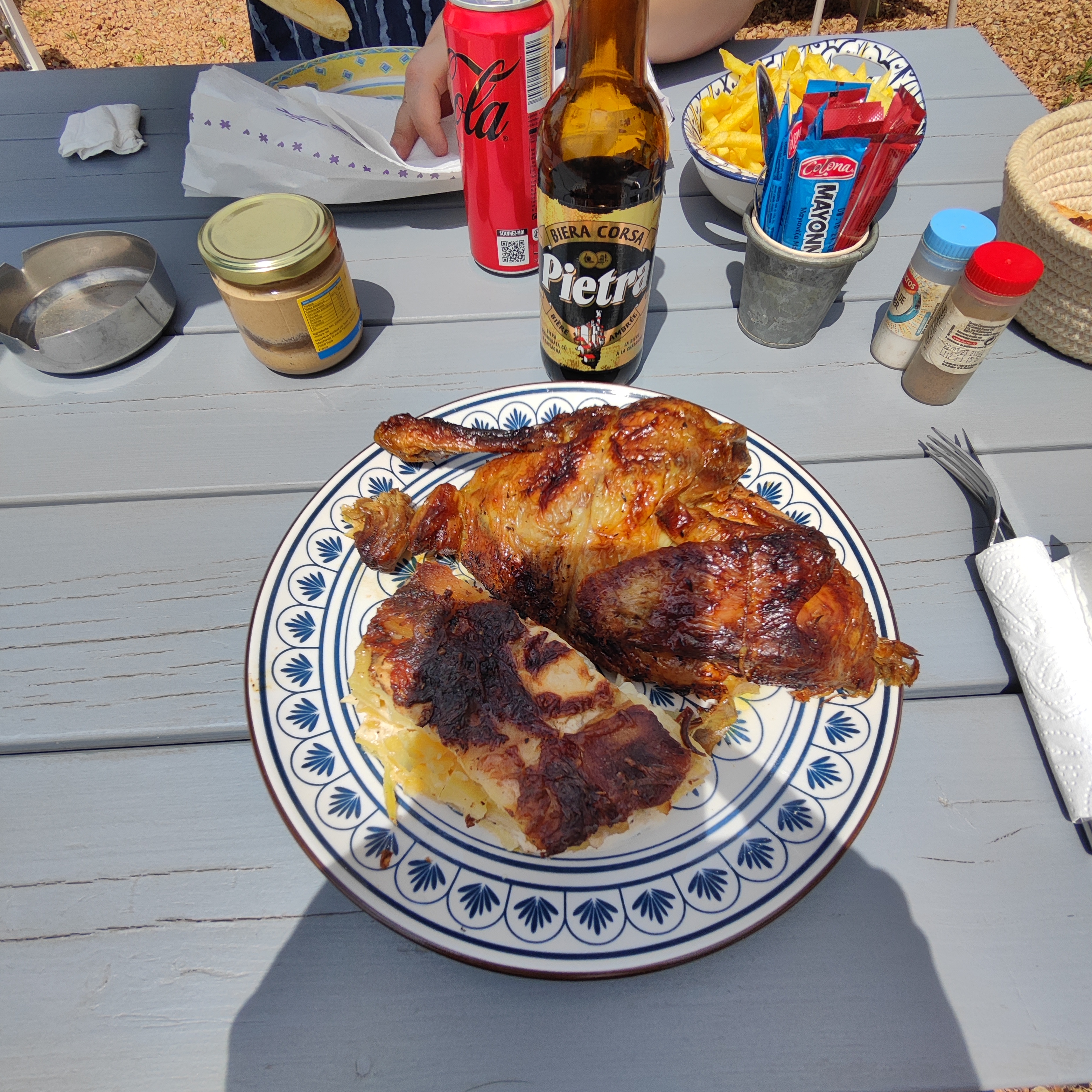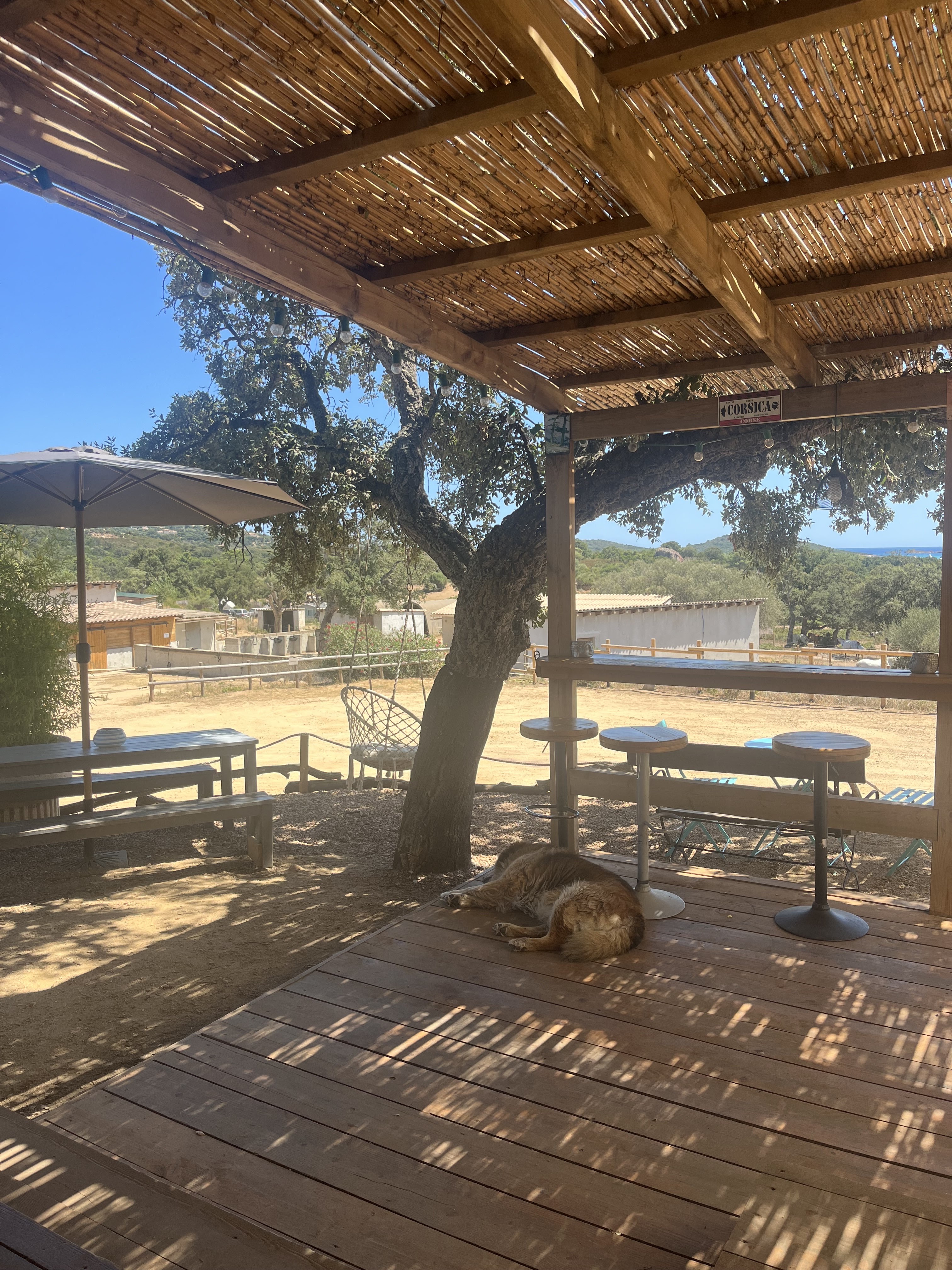 Des propriétaires vraiment super sympas, un joli cadre près des chevaux et vue au loin sur la mer et et... un cochon de lait à la broche accompagné d'un gratin dauphinois crémeux avec ail, une tuerie !! 😉.