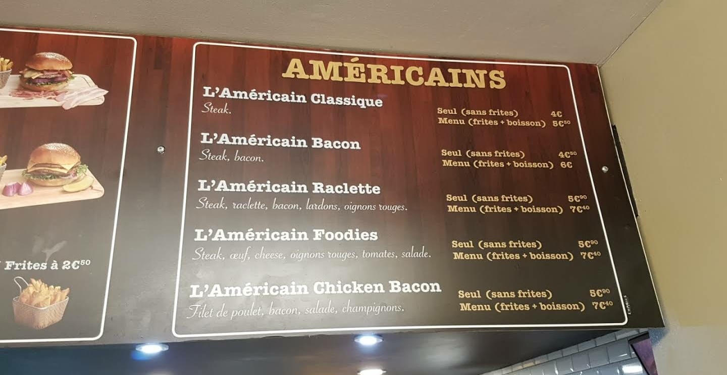 Un Large choix que ça soit pour les burger ou les sandwiches américains, et très bon rapport qualité prix Je recommande vivement